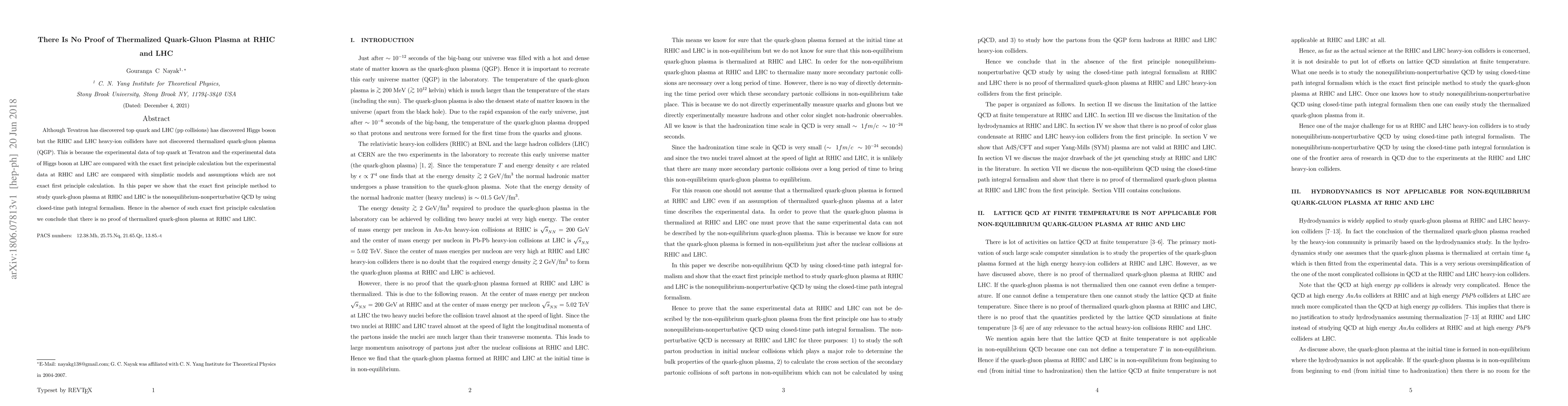 Although Tevatron has discovered top quark and LHC (pp collisions) has discovered Higgs boson but the RHIC and LHC heavy-ion colliders have not discovered thermalized quark-gluon plasma (QGP). This is because the experimental data of top quark at Tevatron and the experimental data of Higgs boson at LHC are compared with the exact first principle calculation but the experimental data at RHIC and LHC are compared with simplistic models and assumptions which are not exact first principle calculation. In this paper we show that the exact first principle method to study quark-gluon plasma at RHIC and LHC is the nonequilibrium-nonperturbative QCD by using closed-time path integral formalism. Hence in the absence of such exact first principle calculation we conclude that there is no proof of thermalized quark-gluon plasma at RHIC and LHC.