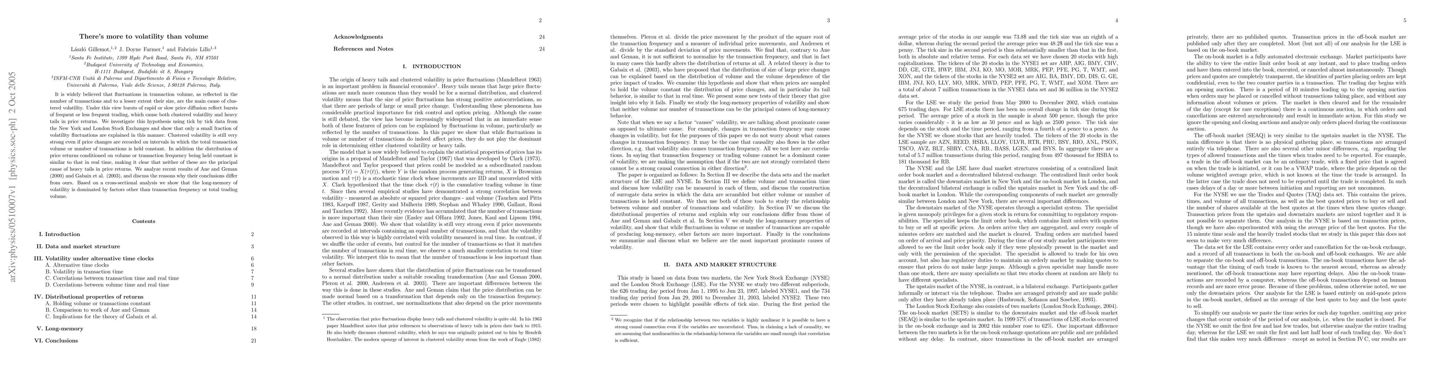 Research finds that fluctuations in stock prices are not mainly caused by changes in trading volume, but rather by other factors, such as long-term volatility patterns.
