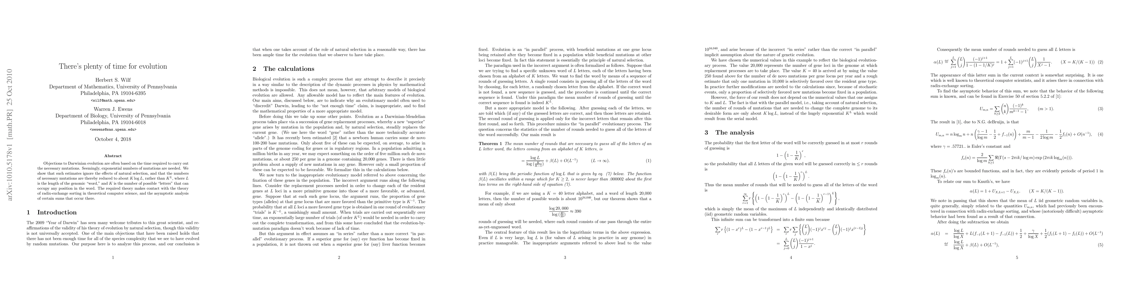 Objections to Darwinian evolution are often based on the time required to carry out the necessary mutations. Seemingly, exponential numbers of mutations are needed. We show that such estimates ignore the effects of natural selection, and that the numbers of necessary mutations are thereby reduced to about $K\log{L}$, rather than $K^L$, where $L$ is the length of the genomic "word", and $K$ is the number of possible "letters" that can occupy any position in the word. The required theory makes contact with the theory of radix-exchange sorting in theoretical computer science, and the asymptotic analysis of certain sums that occur there.