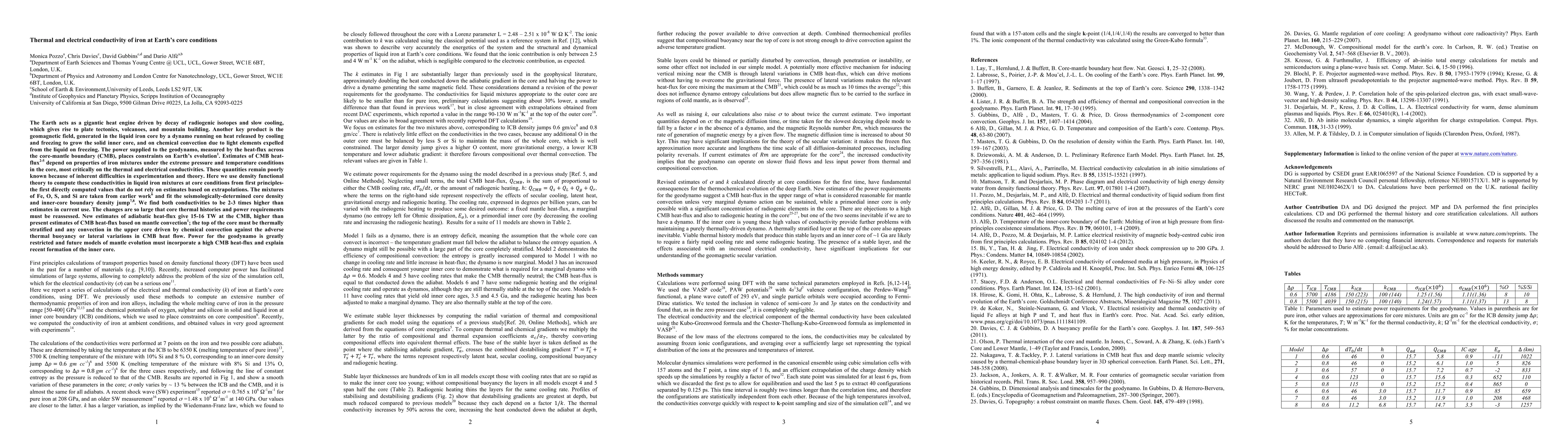 This paper uses density functional theory to compute the thermal and electrical conductivities of iron mixtures at Earth's core conditions, finding them to be 2-3 times higher than current estimates. These findings necessitate a reassessment of core thermal histories and geodynamo power requirements.