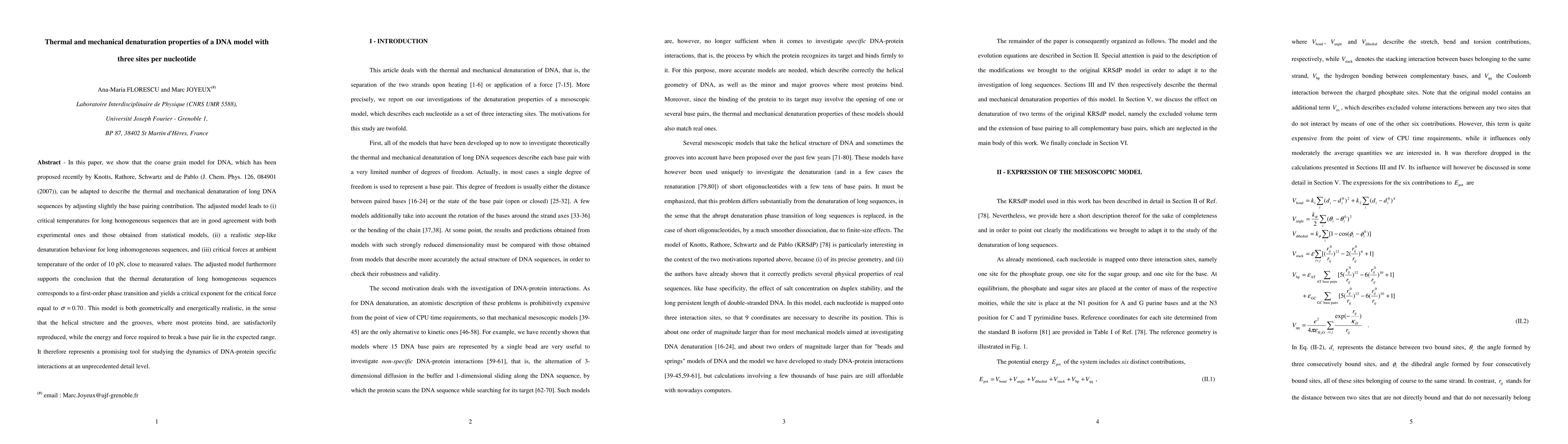 This paper adapts a coarse grain model for DNA to accurately describe thermal and mechanical denaturation, achieving critical temperatures and forces in agreement with experimental data and statistical models, and supporting detailed studies of DNA-protein interactions. The model realistically reproduces DNA structure and base pair energy.