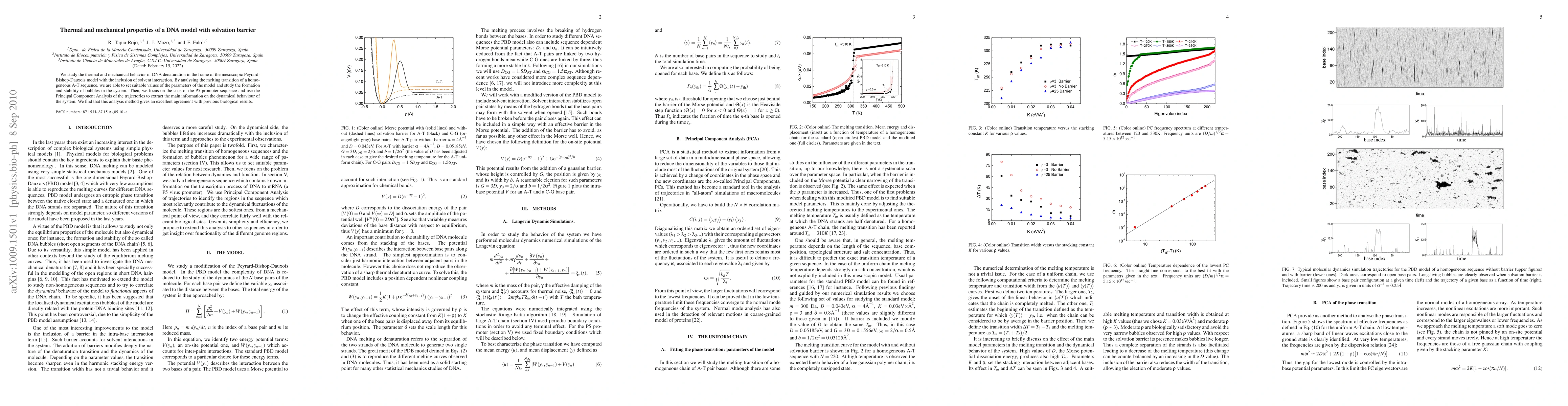 This paper investigates the thermal and mechanical properties of DNA denaturation using the Peyrard-Bishop-Dauxois model with solvent interactions, focusing on the melting transition of A-T sequences and the P5 promoter. Principal Component Analysis of the trajectories reveals insights into the dynamical behavior of the system, aligning well with prior biological findings.