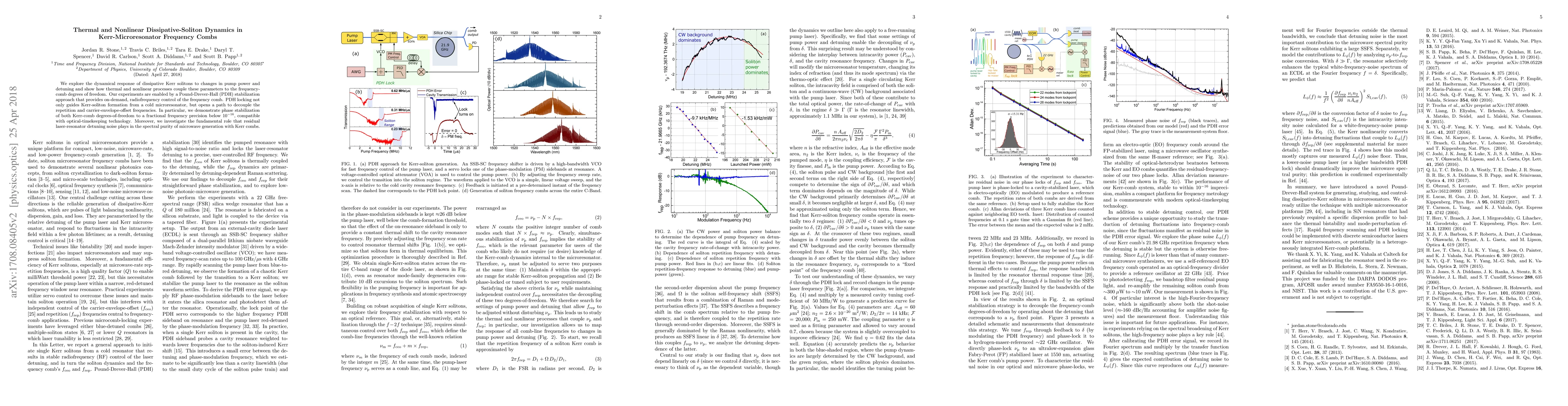 This paper investigates the thermal and nonlinear dynamics of dissipative Kerr solitons in microresonators, demonstrating their frequency-comb response to pump power and detuning changes through a Pound-Drever-Hall stabilization technique, achieving phase stabilization to a precision suitable for optical timekeeping. It also explores the impact of residual detuning noise on microwave generation purity.