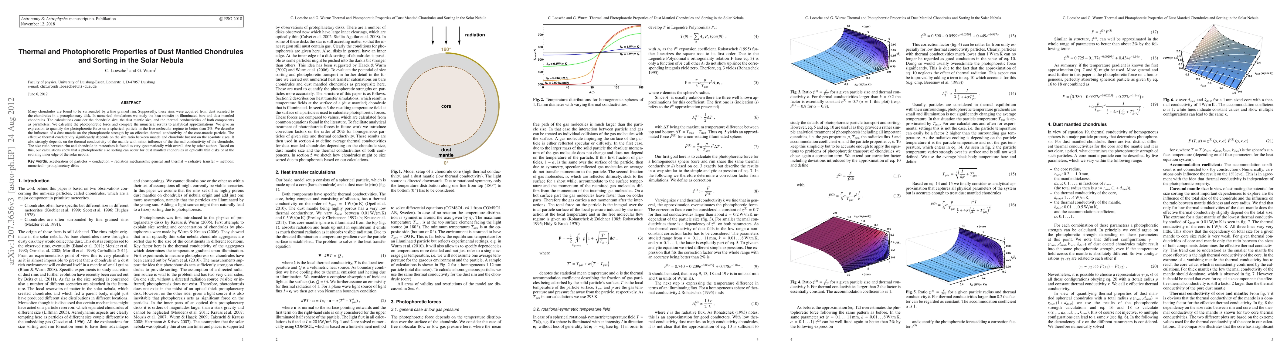 This paper investigates the thermal and photophoretic properties of chondrules with fine-grained rims in the solar nebula, finding that the effective thermal conductivity and photophoretic force are significantly influenced by the size ratio between the rim and chondrule, leading to potential photophoretic size sorting in the disk.