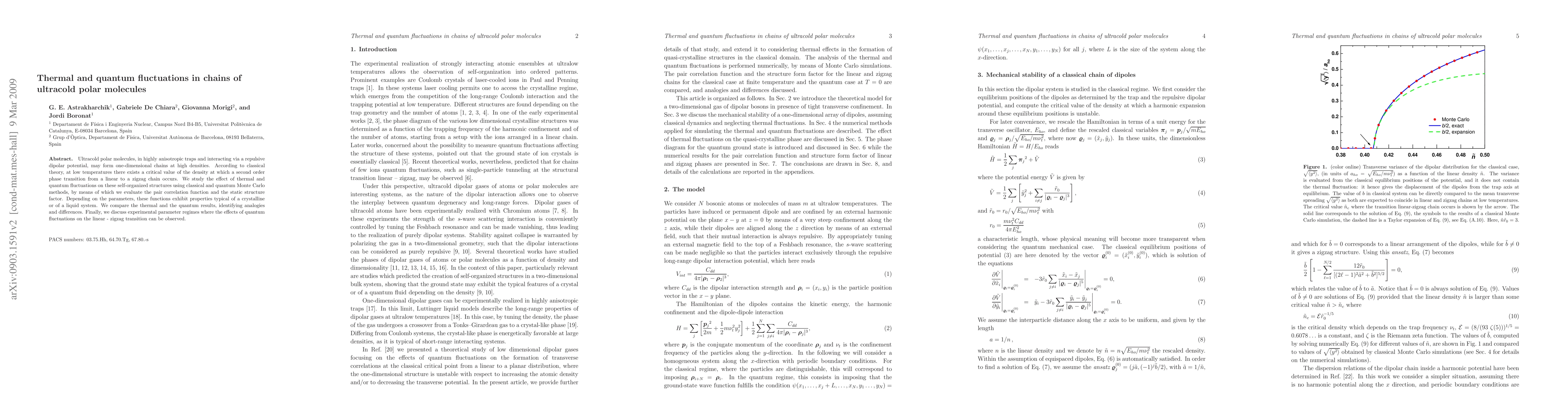This paper investigates the impact of thermal and quantum fluctuations on the phase transitions in chains of ultracold polar molecules using Monte Carlo methods. The study reveals that fluctuations can alter the transition from linear to zigzag chains, with results showing characteristics of both crystalline and liquid systems.