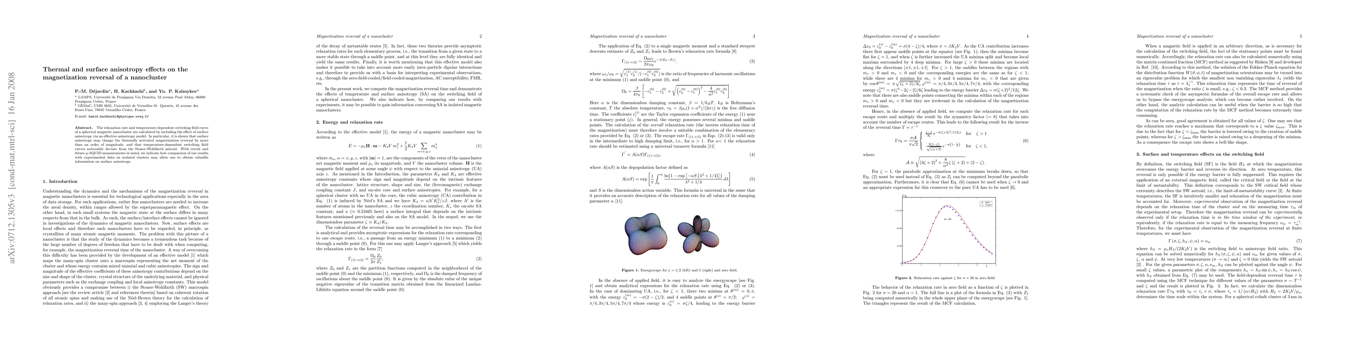 The relaxation rate and temperature-dependent switching field curve of a spherical magnetic nanocluster are calculated by taking into account the effect of surface anisotropy via an effective anisotropy model. In particular, it is shown that surface anisotropy may change the thermally activated magnetization reversal by more than an order of magnitude, and that temperature-dependent switching field curves noticeably deviate from the Stoner-Wohlfarth astroid. With recent and future $\mu$-SQUID measurements in mind, we indicate how comparison of our results with experimental data on isolated clusters may allow one to obtain valuable information on surface anisotropy.