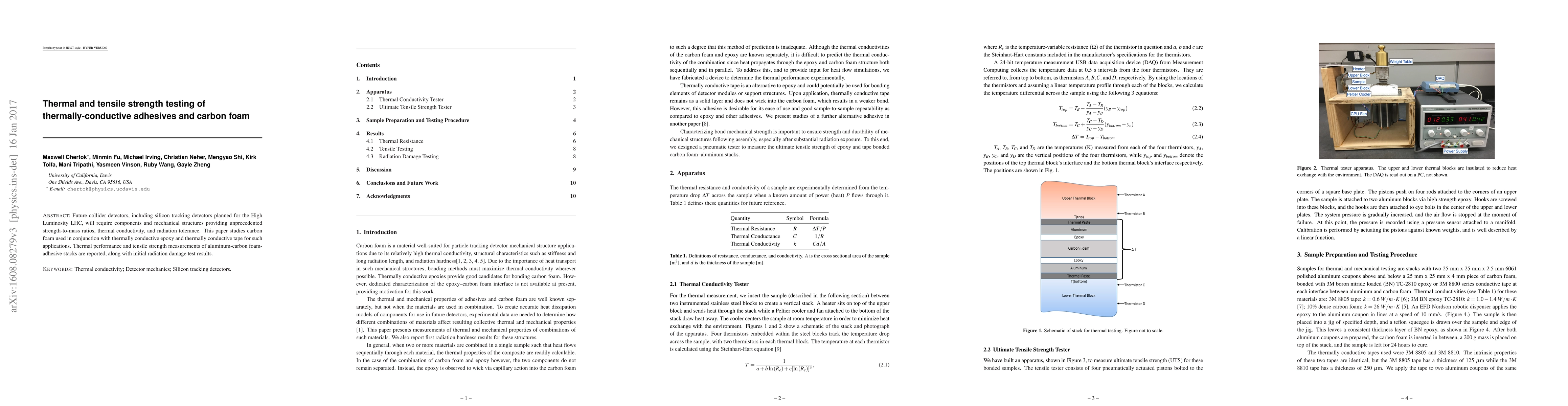 The paper presents a detailed analysis of thermal and tensile strength properties of carbon foam bonded with thermally conductive adhesives, providing valuable insights for future detector designs.