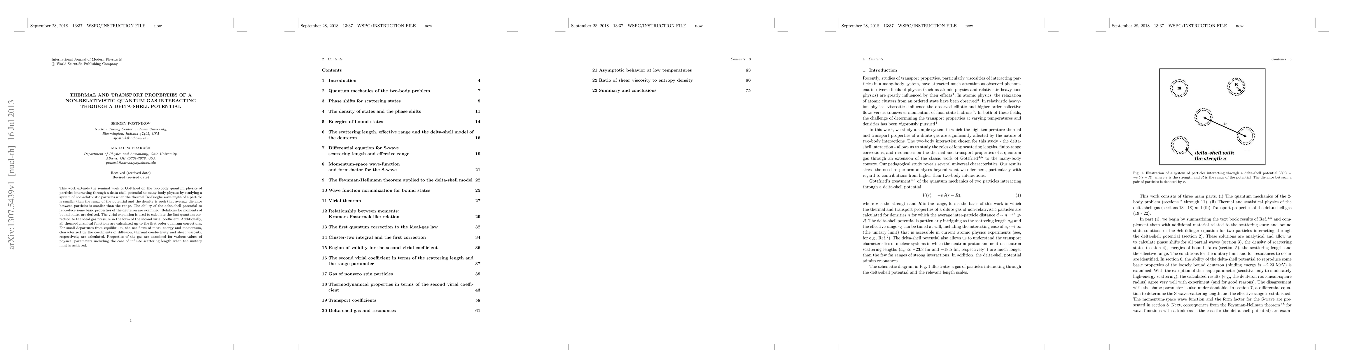 This work extends the seminal work of Gottfried on the two-body quantum physics of particles interacting through a delta-shell potential to many-body physics by studying a system of non-relativistic particles when the thermal De-Broglie wavelength of a particle is smaller than the range of the potential and the density is such that average distance between particles is smaller than the range. The ability of the delta-shell potential to reproduce some basic properties of the deuteron are examined. Relations for moments of bound states are derived. The virial expansion is used to calculate the first quantum correction to the ideal gas pressure in the form of the second virial coefficient. Additionally, all thermodynamic functions are calculated up to the first order quantum corrections. For small departures from equilibrium, the net flows of mass, energy and momentum, characterized by the coefficients of diffusion, thermal conductivity and shear viscosity, respectively, are calculated. Properties of the gas are examined for various values of physical parameters including the case of infinite scattering length when the unitary limit is achieved.