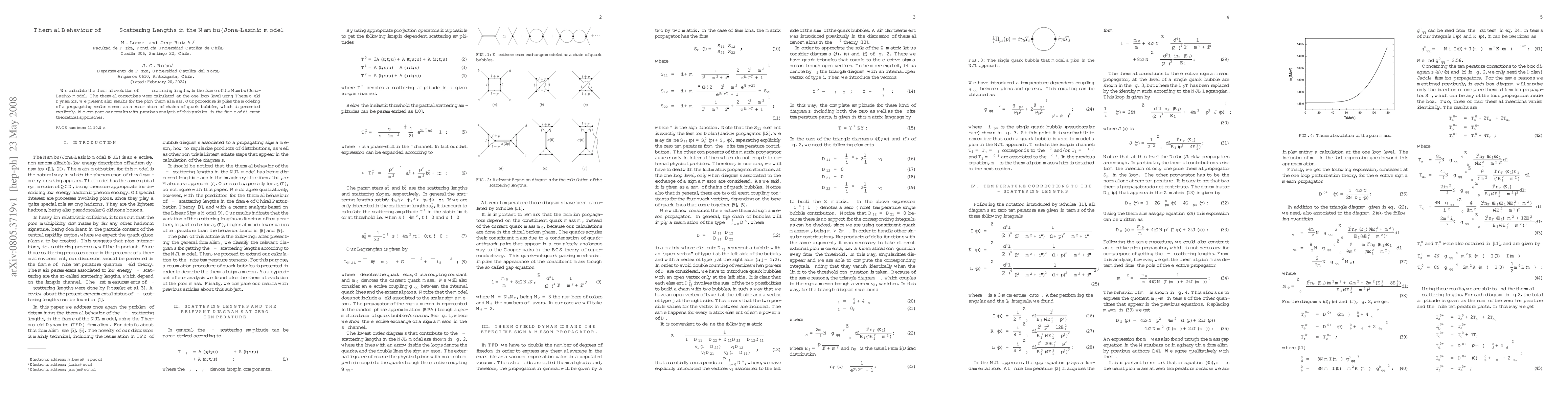 This paper calculates the thermal evolution of $\pi-\pi$ scattering lengths in the Nambu-Jona-Lasinio model using Thermofield Dynamics for one-loop corrections, and presents results for the pion thermal mass. The study models a propagating scalar meson as a resummation of quark bubble chains and compares its findings with previous theoretical analyses.