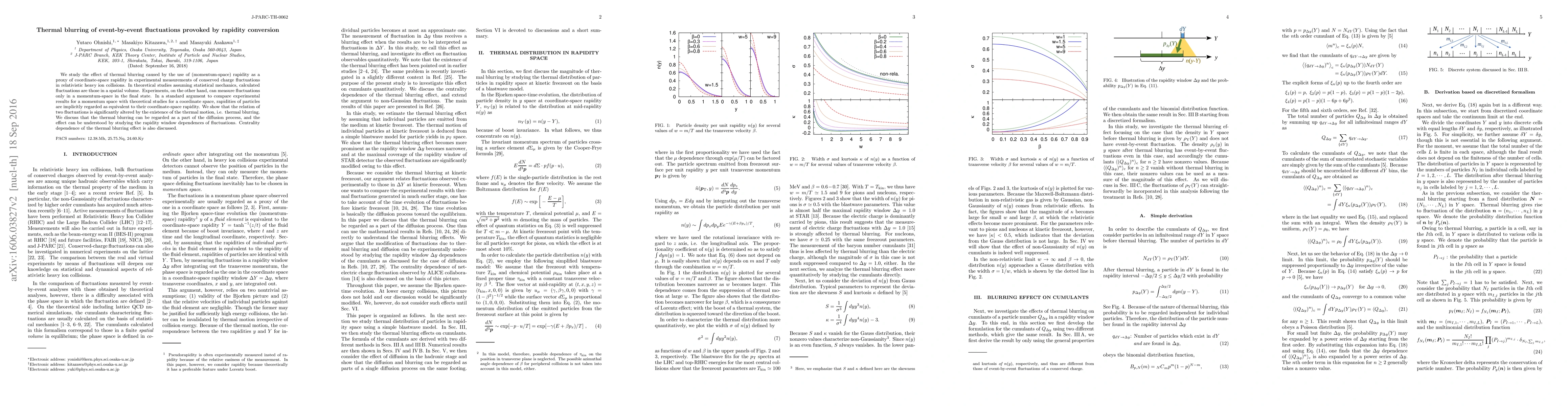 We study the effect of thermal blurring caused by the use of (momentum-space) rapidity as a proxy of coordinate-space rapidity in experimental measurements of conserved charge fluctuations in relativistic heavy ion collisions. In theoretical studies assuming statistical mechanics, calculated fluctuations are those in a spatial volume. Experiments, on the other hand, can measure fluctuations only in a momentum-space in the final state. In a standard argument to compare experimental results for a momentum space with theoretical studies for a coordinate space, rapidities of particles are implicitly regarded as equivalent to their coordinate-space rapidity. We show that the relation of two fluctuations is significantly altered by the existence of the thermal motion, i.e. thermal blurring. We discuss that the thermal blurring can be regarded as a part of the diffusion process, and the effect can be understood by studying the rapidity window dependences of fluctuations. Centrality dependence of the thermal blurring effect is also discussed.