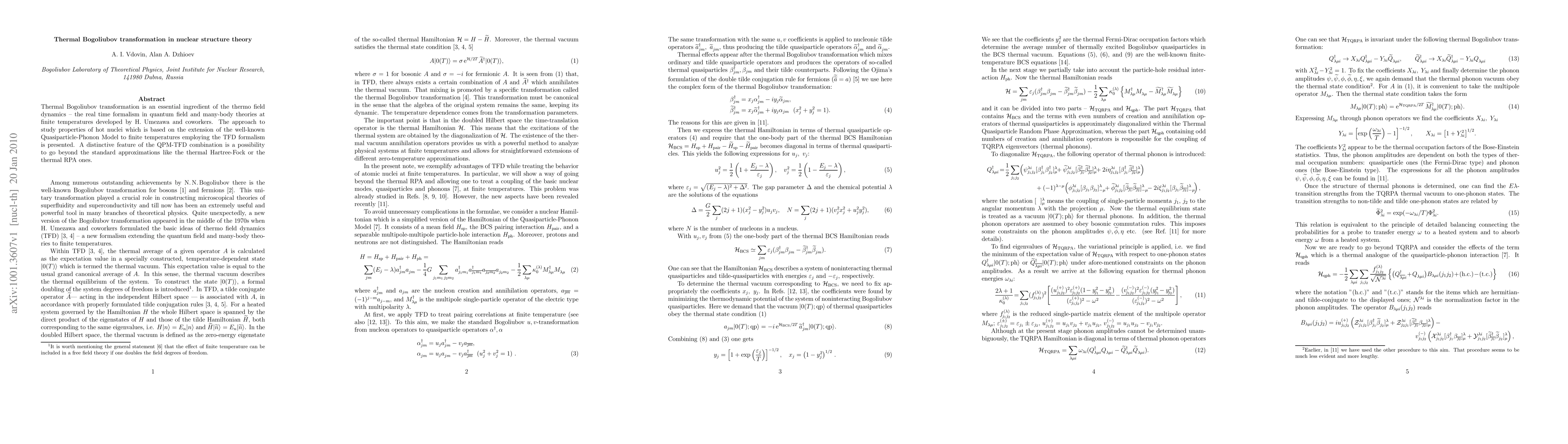 Thermal Bogoliubov transformation is an essential ingredient of the thermo field dynamics -- the real time formalism in quantum field and many-body theories at finite temperatures developed by H. Umezawa and coworkers. The approach to study properties of hot nuclei which is based on the extension of the well-known Quasiparticle-Phonon Model to finite temperatures employing the TFD formalism is presented. A distinctive feature of the QPM-TFD combination is a possibility to go beyond the standard approximations like the thermal Hartree-Fock or the thermal RPA ones.