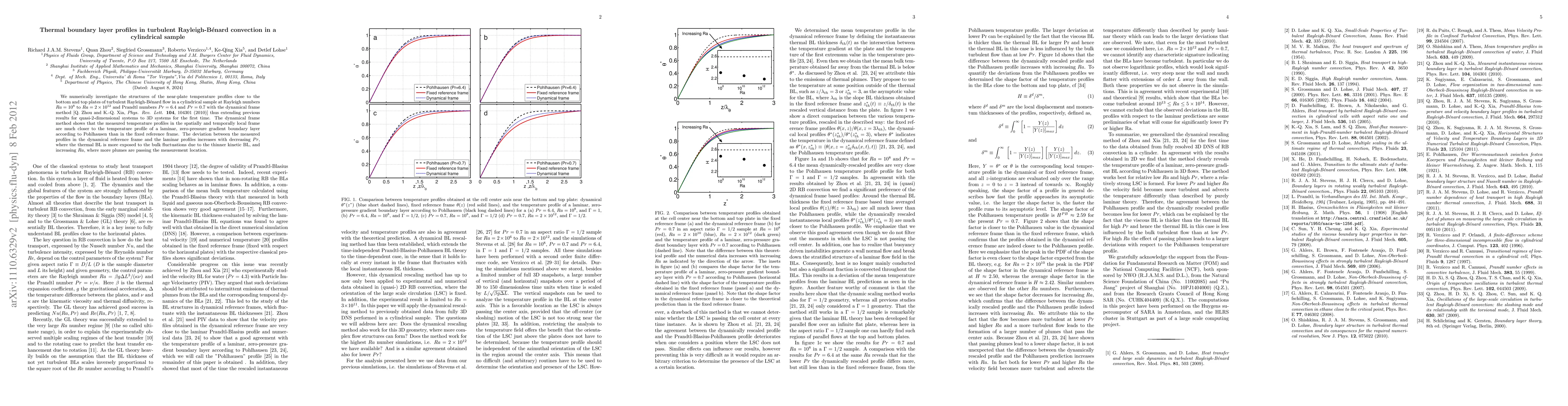 We numerically investigate the structures of the near-plate temperature profiles close to the bottom and top plates of turbulent Rayleigh-B\'{e}nard flow in a cylindrical sample at Rayleigh numbers Ra=10^8 to Ra=2\times10^{12} and Prandtl numbers Pr=6.4 and Pr=0.7 with the dynamical frame method [Q. Zhou and K.-Q. Xia, Phys. Rev. Lett. 104, 104301 (2010)] thus extending previous results for quasi-2-dimensional systems to 3D systems for the first time. The dynamical frame method shows that the measured temperature profiles in the spatially and temporally local frame are much closer to the temperature profile of a laminar, zero-pressure gradient boundary layer according to Pohlhausen than in the fixed reference frame. The deviation between the measured profiles in the dynamical reference frame and the laminar profiles increases with decreasing Pr, where the thermal BL is more exposed to the bulk fluctuations due to the thinner kinetic BL, and increasing Ra, where more plumes are passing the measurement location.