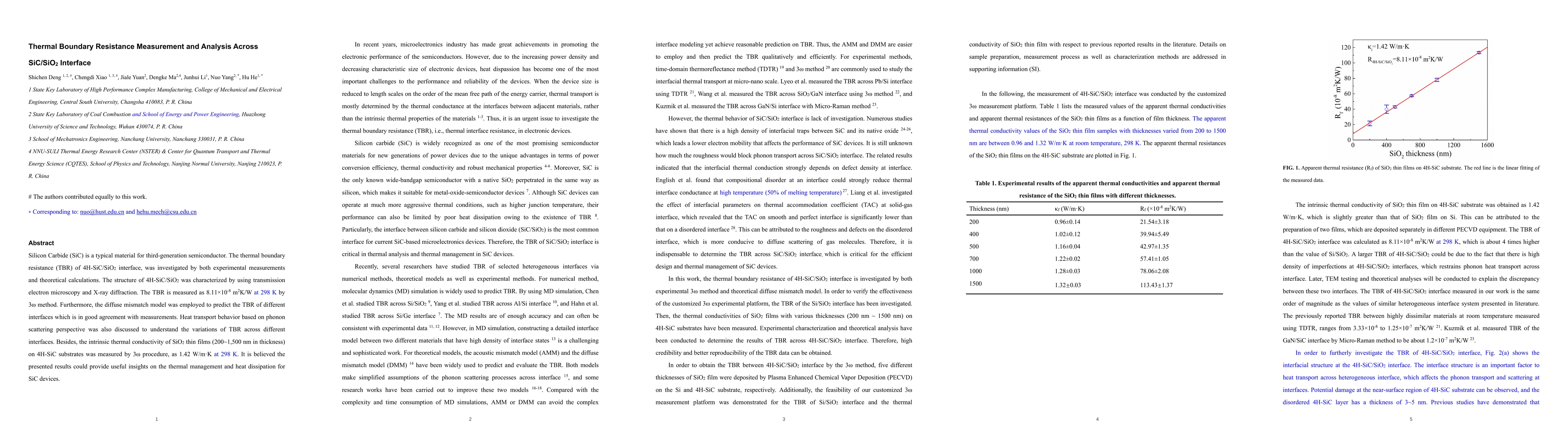 This paper investigates the thermal boundary resistance (TBR) at the 4H-SiC/SiO2 interface using experimental and theoretical methods, measuring it as 8.11*10^-8 m^2K/W. The study also explores the intrinsic thermal conductivity of SiO2 thin films and discusses phonon scattering for heat transport.