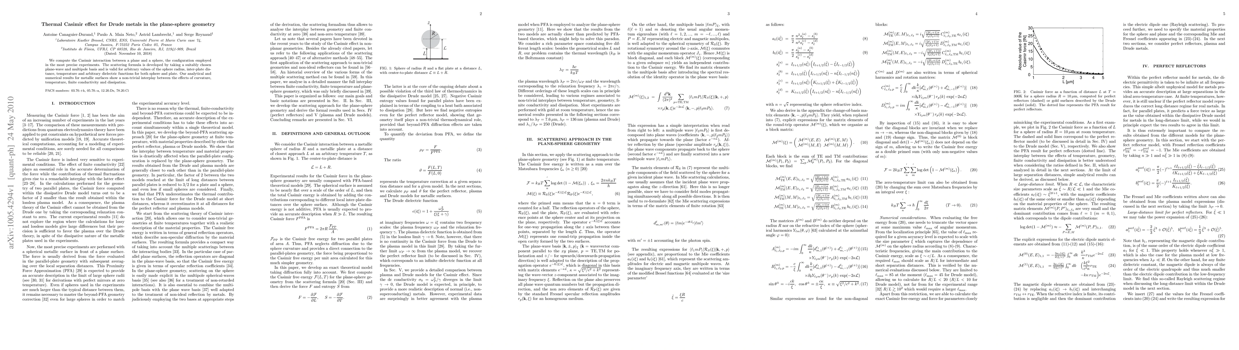 We compute the Casimir interaction between a plane and a sphere, the configuration employed in the most precise experiments. The scattering formula is developed by taking a suitably chosen plane-wave and multipole basis and is valid for arbitrary values of the sphere radius, inter-plate distance, temperature and arbitrary dielectric functions for both sphere and plate. Our analytical and numerical results for metallic surfaces show a non-trivial interplay between the effects of curvature, temperature, finite conductivity and dissipation.