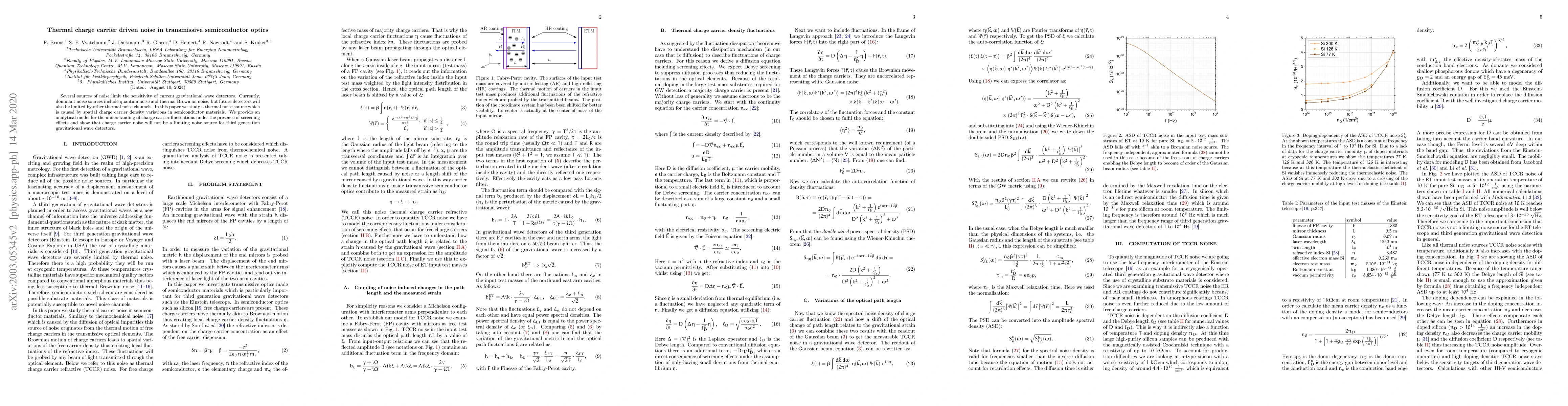 This paper investigates thermal noise in transmissive semiconductor optics due to spatial charge carrier density variations, presenting an analytical model that considers screening effects. The study concludes that this noise source will not limit the sensitivity of third-generation gravitational wave detectors.