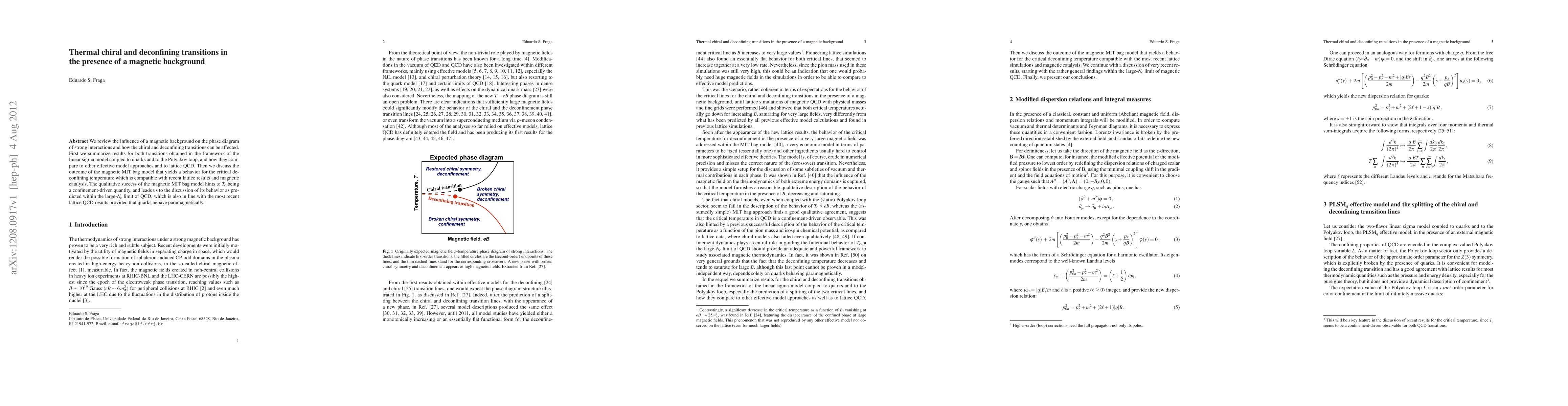 This paper reviews how a magnetic background influences chiral and deconfining transitions in strong interactions, comparing results from the linear sigma model and the magnetic MIT bag model to lattice QCD findings. It concludes that the deconfining transition temperature, $T_c$, is likely confinement-driven and aligns with recent lattice QCD results under paramagnetic quark behavior.