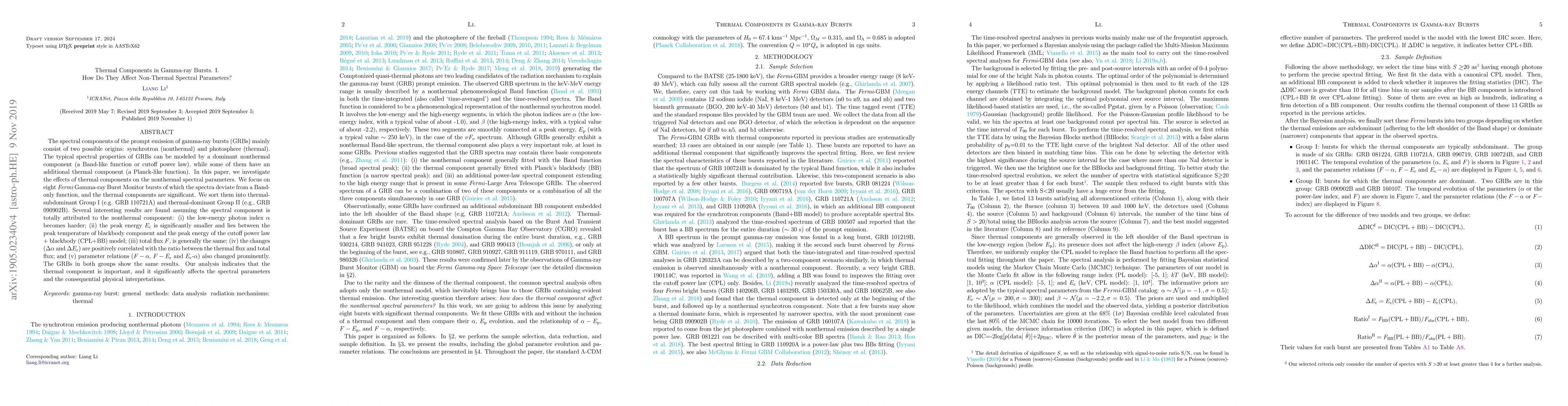 The spectral components of the prompt emission of gamma-ray bursts (GRBs) mainly consist of two possible origins: synchrotron (nonthermal) and photosphere (thermal). The typical spectral properties of GRBs can be modeled by a dominant nonthermal component (a Band-like function or cutoff power law), while some of them have an additional thermal component (a Planck-like function). In this paper, we investigate the effects of thermal components on the nonthermal spectral parameters. We focus on eight {\it Fermi} Gamma-ray Burst Monitor bursts of which the spectra deviate from a Band-only function, and the thermal components are significant. We sort them into thermal-subdominant Group I (e.g. GRB 110721A) and thermal-dominant Group II (e.g., GRB 090902B). Several interesting results are found assuming the spectral component is totally attributed to the nonthermal component: (i) the low-energy photon index $\alpha$ becomes harder; (ii) the peak energy $E_{\rm c}$ is significantly smaller and lies between the peak temperature of blackbody component and the peak energy of the cutoff power law + blackbody (CPL+BB) model; (iii) total flux $F$, is generally the same; (iv) the changes ($\Delta \alpha$ and $\Delta E_{\rm c}$) are positively correlated with the ratio between the thermal flux and total flux; and (v) parameter relations ($F-\alpha$, $F-E_{\rm c}$ and $E_{\rm c}$-$\alpha$) also changed prominently. The GRBs in both groups show the same results. Our analysis indicates that the thermal component is important, and it significantly affects the spectral parameters and the consequential physical interpretations.