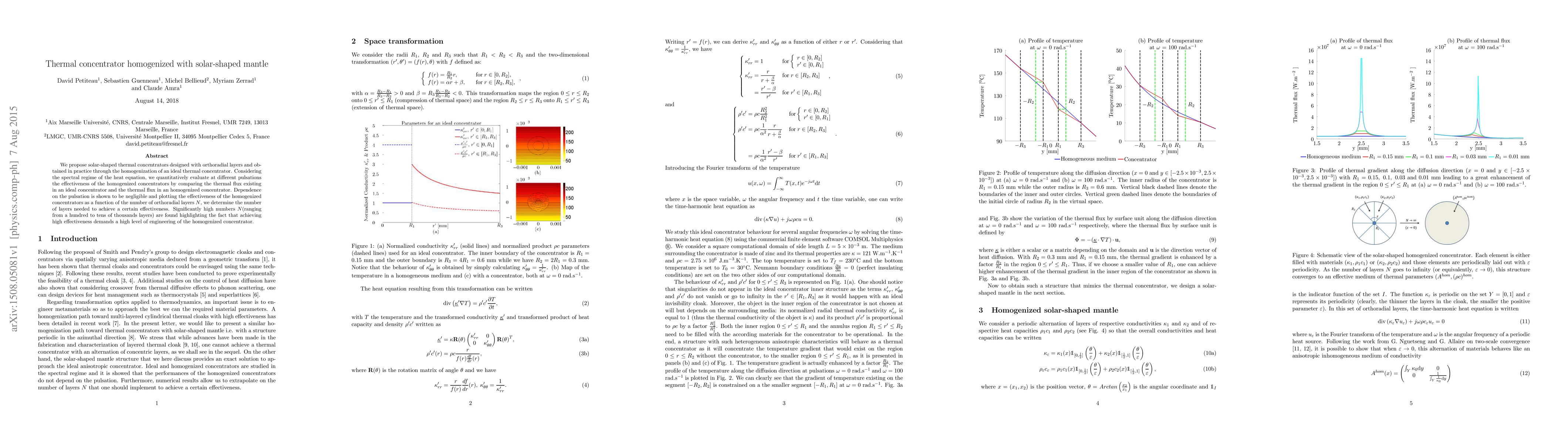 The research proposes solar-shaped thermal concentrators designed with orthoradial layers, obtained through the homogenization of an ideal thermal concentrator. The effectiveness of these homogenized concentrators is evaluated quantitatively in the spectral regime of the heat equation at different pulsations.