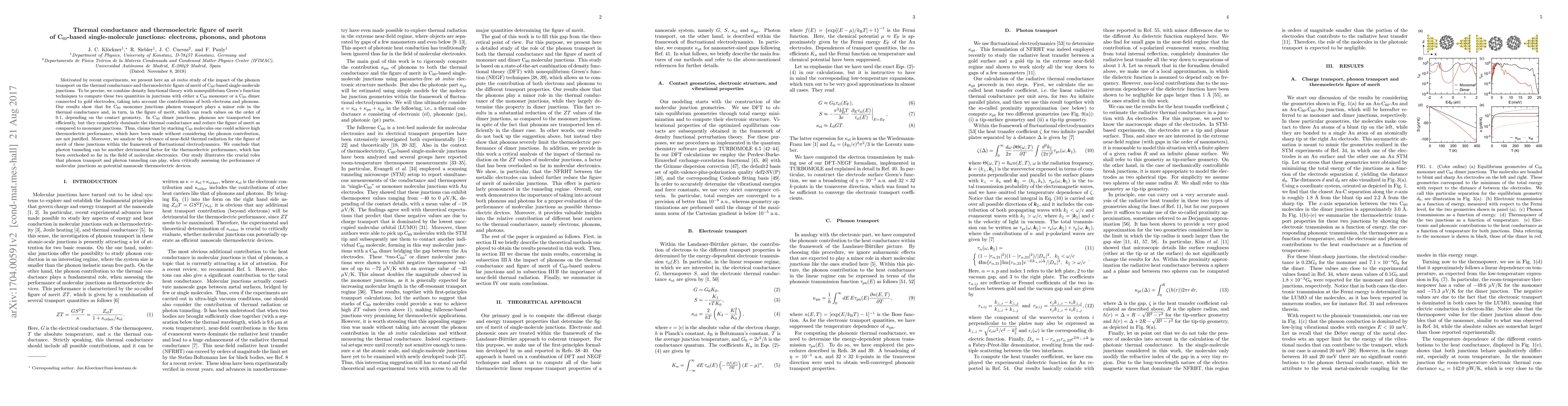This study combines density functional theory with nonequilibrium Green's function techniques to analyze the thermal conductance and thermoelectric figure of merit in C$_{60}$-based single-molecule junctions, considering electron and phonon contributions. It finds that phonons dominate thermal conductance in C$_{60}$ dimer junctions, significantly reducing the figure of merit compared to monomer junctions, and highlights the detrimental role of photon tunneling in thermoelectric performance.
