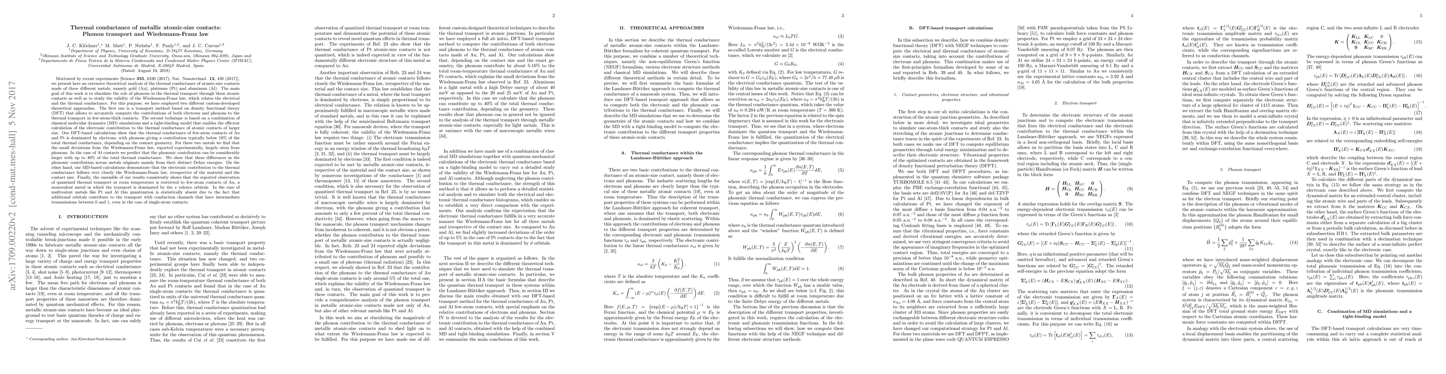 This paper provides a theoretical analysis of thermal conductance in metallic atomic-size contacts, focusing on phonon transport and the Wiedemann-Franz law for gold, platinum, and aluminum. The study is motivated by recent experimental findings in nanoscale thermal transport.
