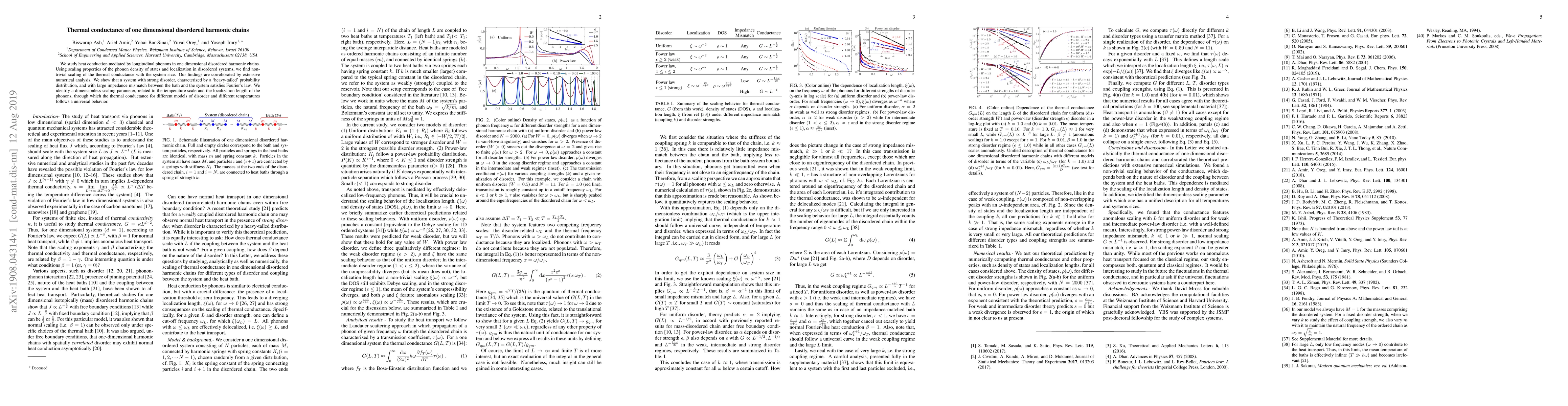 The work explores the relationship between system size, disorder, and thermal conductivity in one dimensional disordered harmonic chains