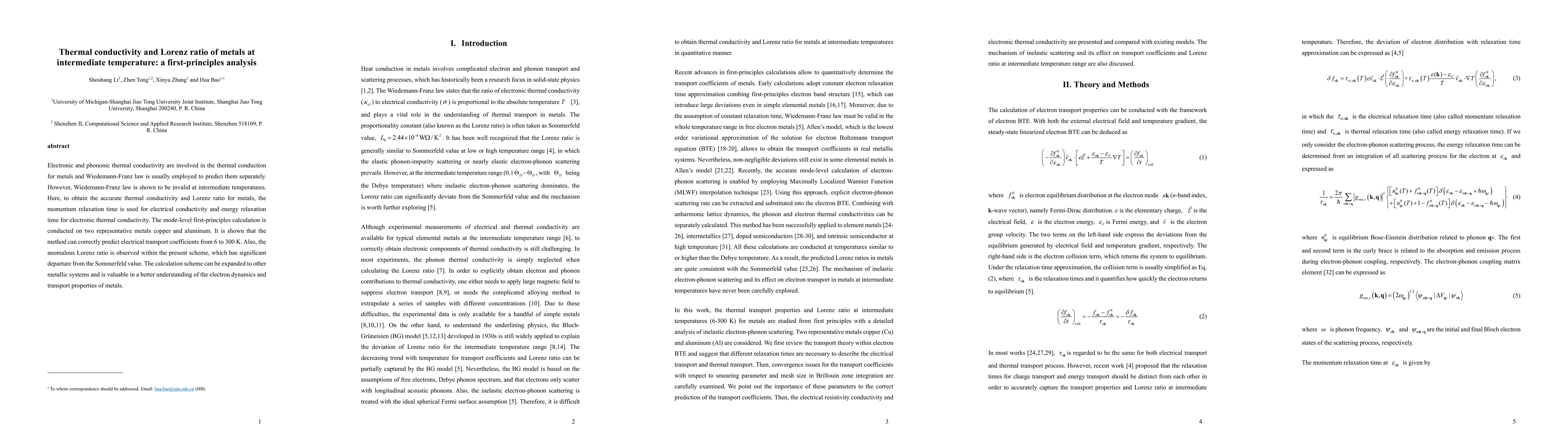 This paper uses first-principles calculations to accurately determine thermal conductivity and Lorenz ratio in metals at intermediate temperatures, finding that traditional Wiedemann-Franz law fails. The method accurately predicts electrical transport coefficients for copper and aluminum from 6 to 300 K, revealing an anomalous Lorenz ratio deviating from the Sommerfeld value.