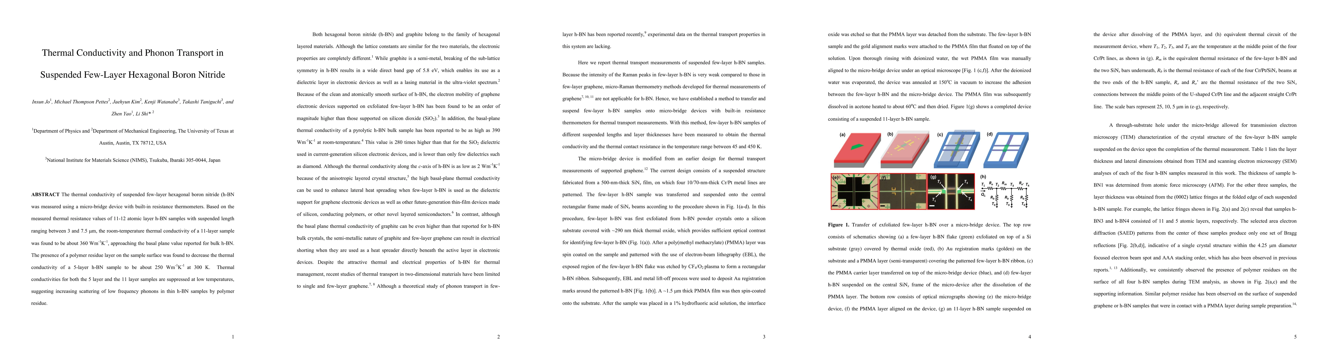 The study presents a novel approach to measuring thermal conductivity of suspended few-layer hexagonal boron nitride using a micro-bridge device.