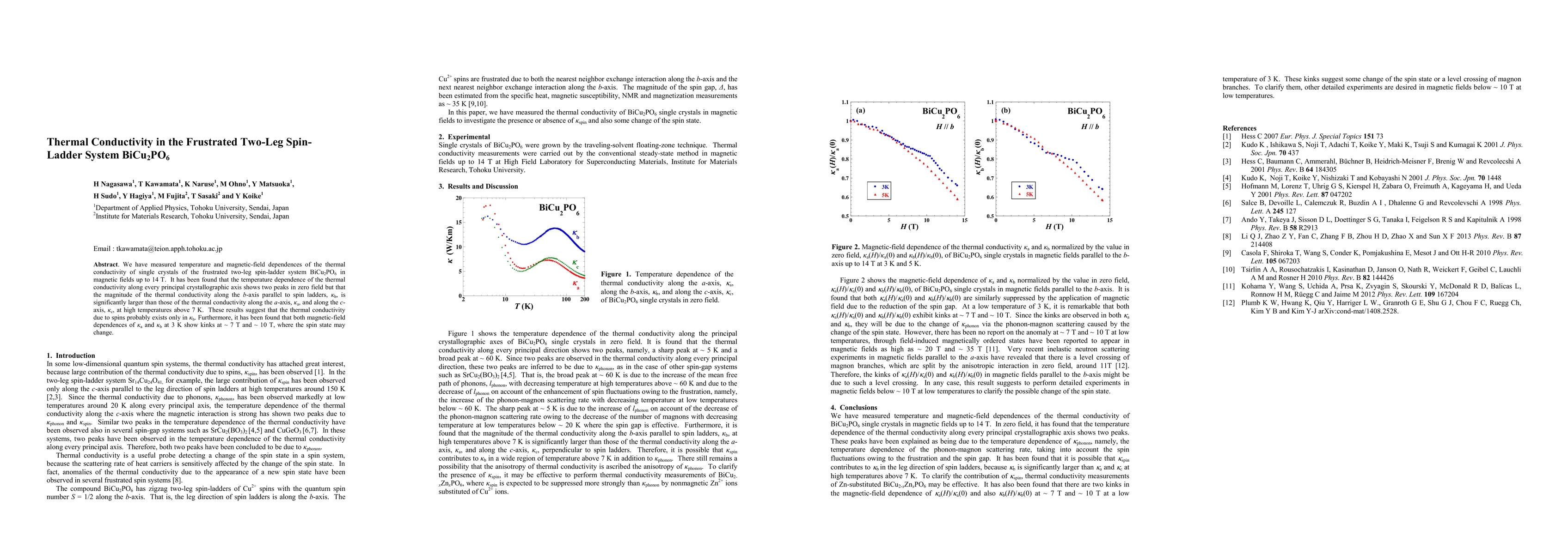 The paper presents a comprehensive analysis of thermal conductivity in BiCu2PO6, identifying temperature and magnetic-field-dependent behaviors, and proposes potential κspin contribution along the b-axis.