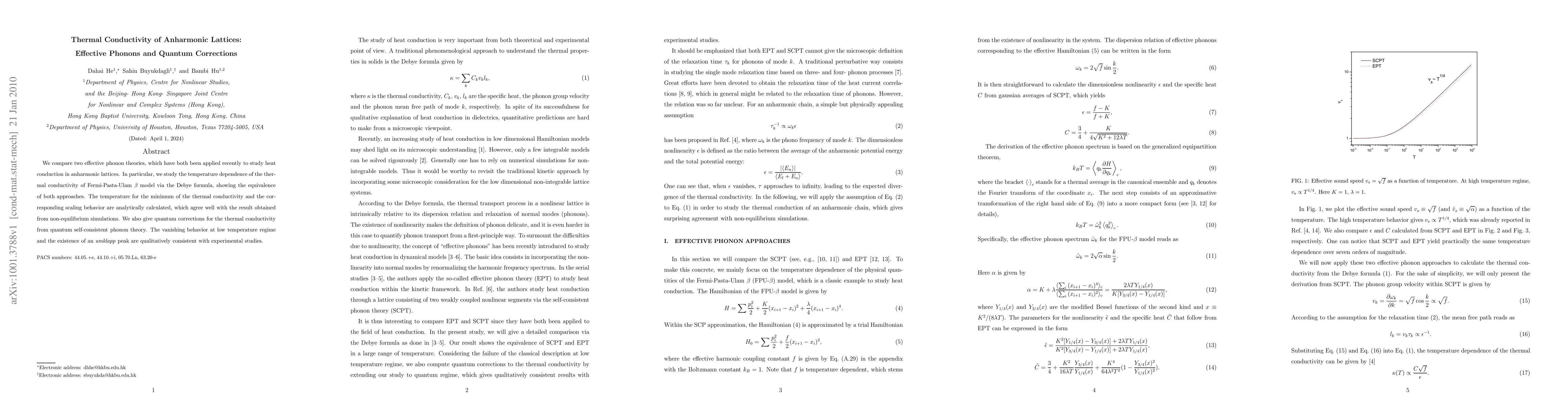 This paper compares two effective phonon theories to study heat conduction in anharmonic lattices, specifically analyzing the Fermi-Pasta-Ulam model. It finds both approaches yield equivalent results, and the calculated temperature dependence of thermal conductivity aligns with nonequilibrium simulations, while quantum corrections show consistency with experimental observations.