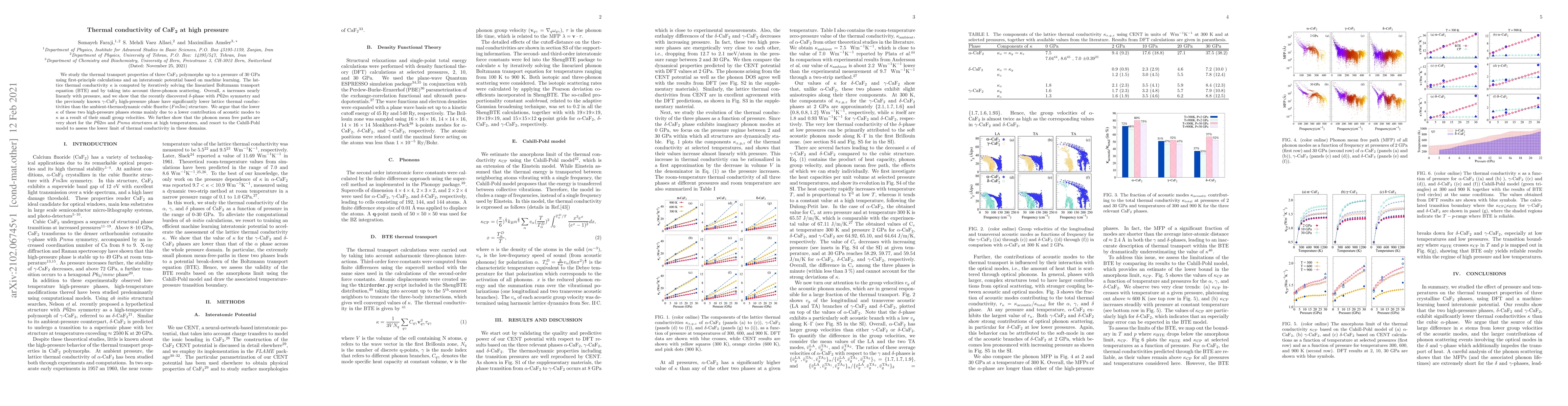 Researchers studied thermal conductivity in high-pressure CaF$_{2}$ polymorphs, finding that two phases have lower lattice thermal conductivities than the ambient cubic structure due to reduced acoustic mode contributions.