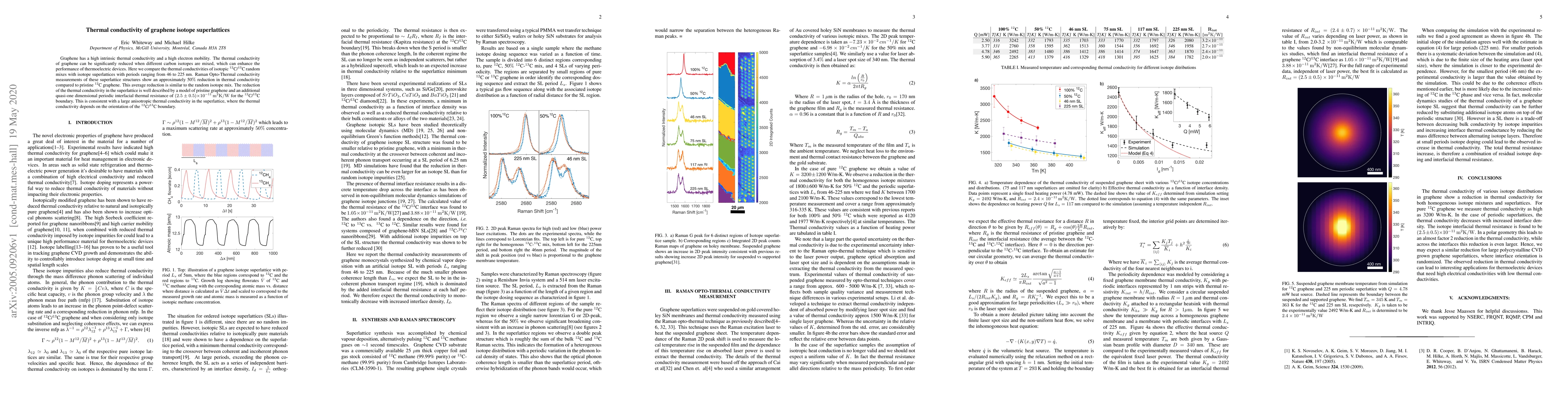 This paper investigates the thermal conductivity of graphene superlattices made from different carbon isotopes, finding a significant reduction compared to pure graphene. Superlattices exhibit anisotropic thermal conductivity, with a quasi-one-dimensional periodic interfacial thermal resistance contributing to the overall reduction.