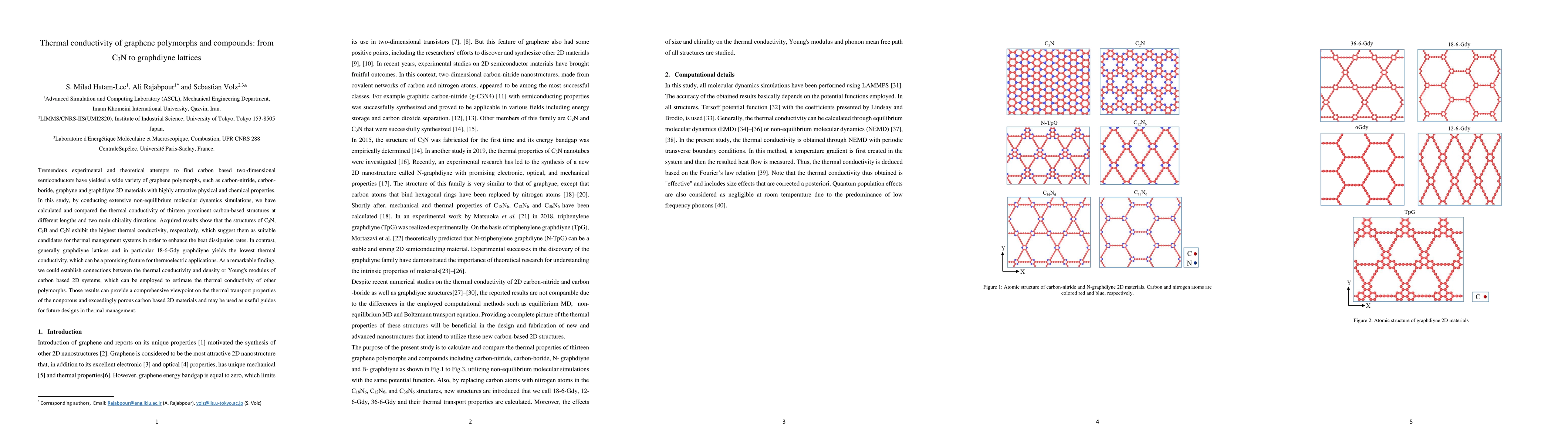 This study investigates the thermal conductivity of various graphene polymorphs and compounds using non-equilibrium molecular dynamics simulations. The results show that C3N, C3B, and C2N have the highest thermal conductivity, making them ideal for thermal management, while graphdiyne, especially 18-6-Gdy, has the lowest, suggesting potential for thermoelectric applications.