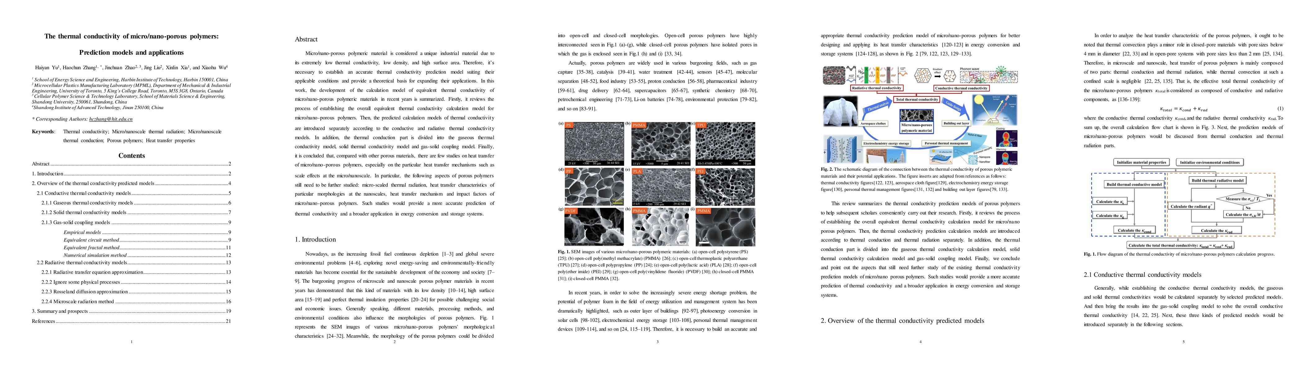 This paper reviews recent developments in predicting the thermal conductivity of micro/nano-porous polymers, emphasizing the need for accurate models to enhance their applications in energy systems. It categorizes existing models into conductive and radiative types, highlighting gaps in research on micro/nanoscale heat transfer mechanisms.