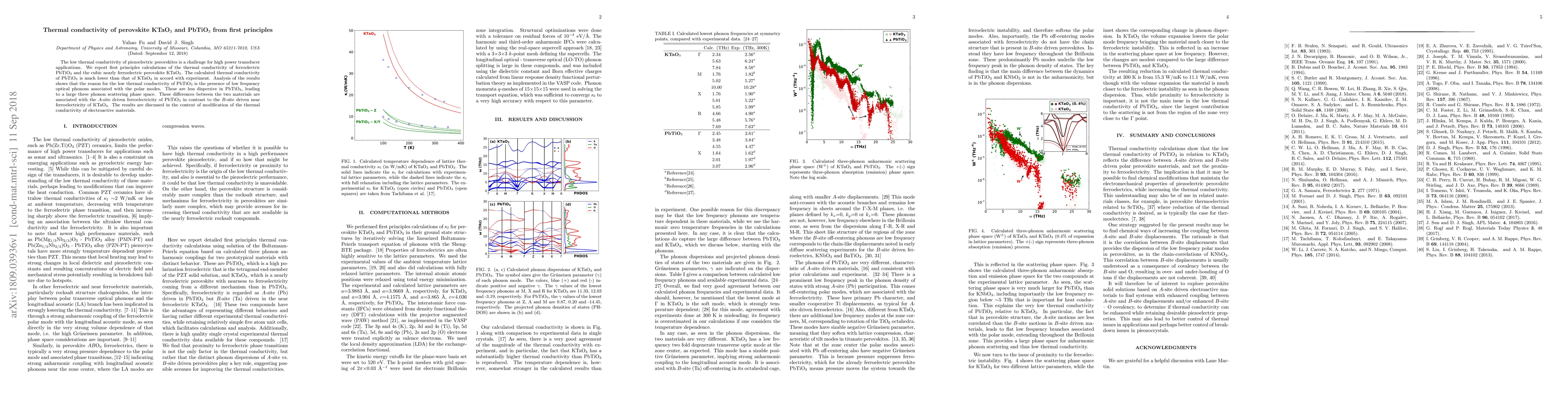Researchers calculated the thermal conductivity of perovskite materials PbTiO3 and KTaO3 using first principles methods, finding that PbTiO3 has lower conductivity due to low frequency optical phonons associated with polar modes.