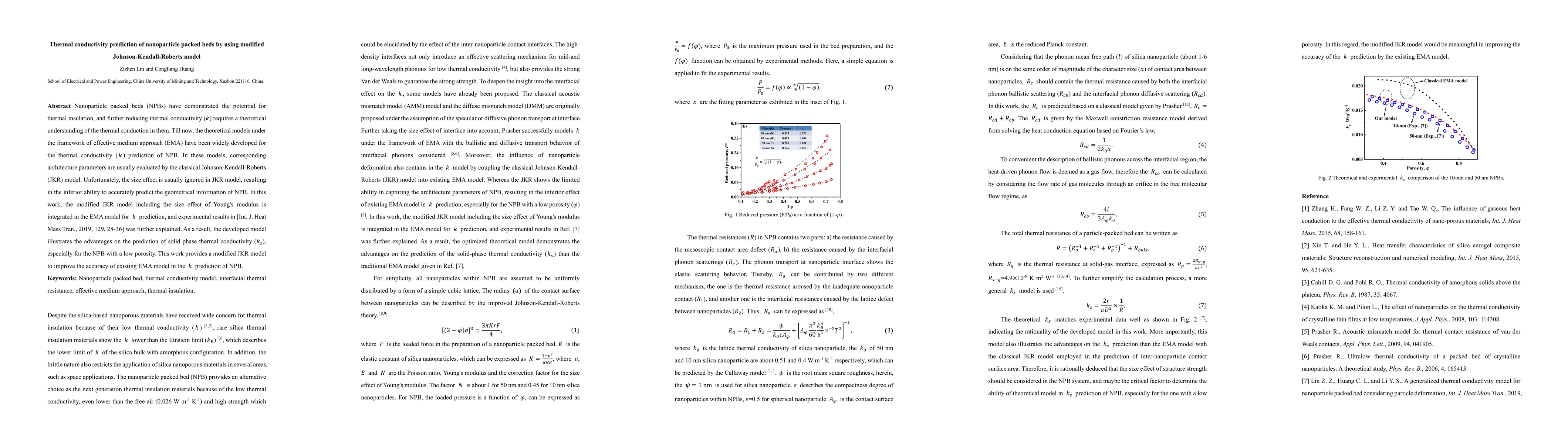This work provides a modified JKR model to improve the accuracy of existing EMA model in k prediction, especially for NPB with low porosity.
