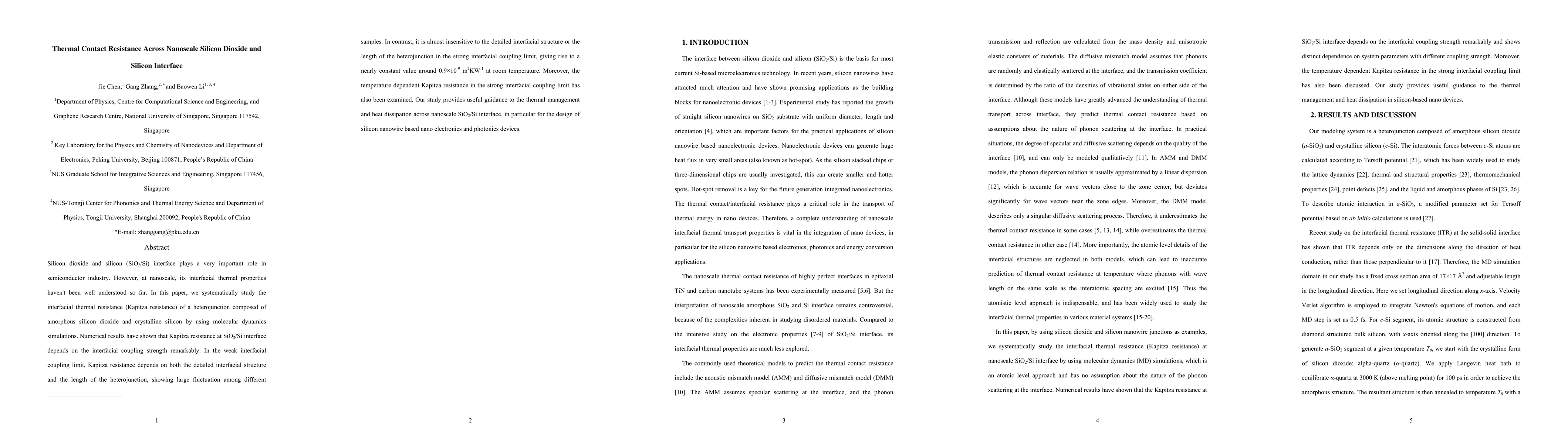 This paper investigates the thermal contact resistance (Kapitza resistance) at the nanoscale interface between amorphous silicon dioxide and crystalline silicon using molecular dynamics simulations. The study reveals that Kapitza resistance varies significantly with the interfacial coupling strength, being highly dependent on structure and length in weak coupling, but nearly constant in strong coupling, around 0.9 $\times10^{-9}$ m$^{2}$KW$^{-1}$ at room temperature.