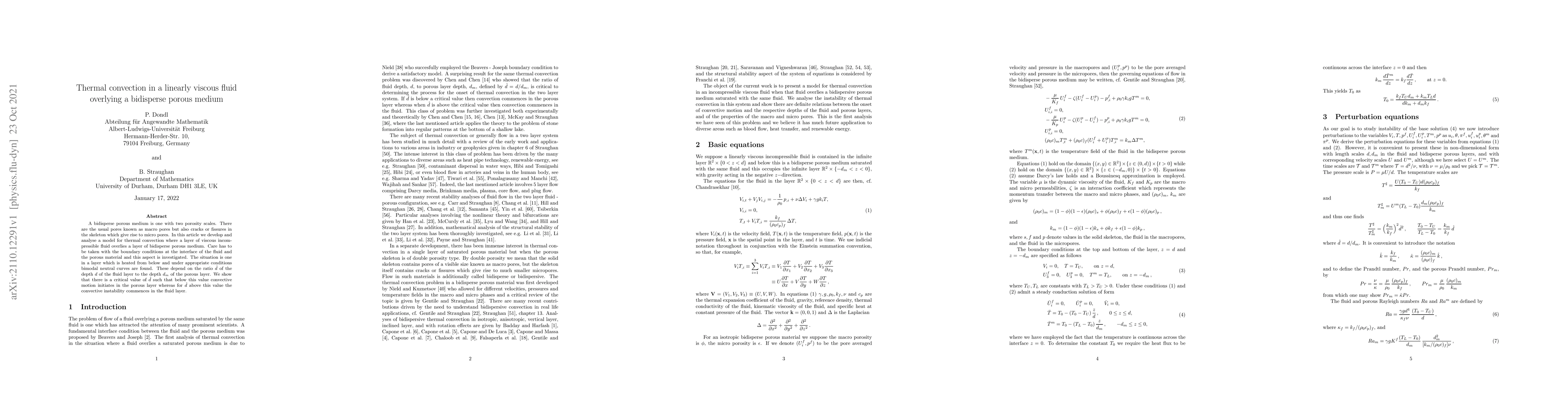 This paper develops a model for thermal convection in a viscous fluid over a bidisperse porous medium with macro and micro pores. It identifies critical conditions for convective instability, showing that the depth ratio of the fluid layer to the porous layer determines whether convection initiates in the porous or fluid layer.