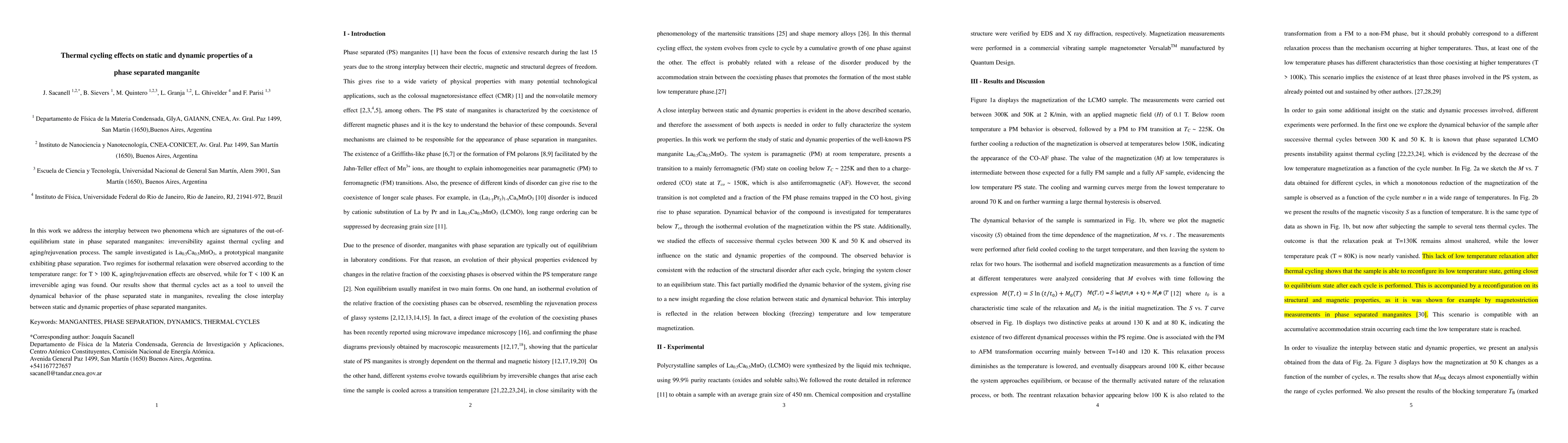 This study investigates the thermal cycling effects on La0.5Ca0.5MnO3 manganite, revealing distinct isothermal relaxation regimes: aging/rejuvenation above 100 K and irreversible aging below. Thermal cycling highlights the dynamic interplay between static and dynamic properties in phase-separated manganites.