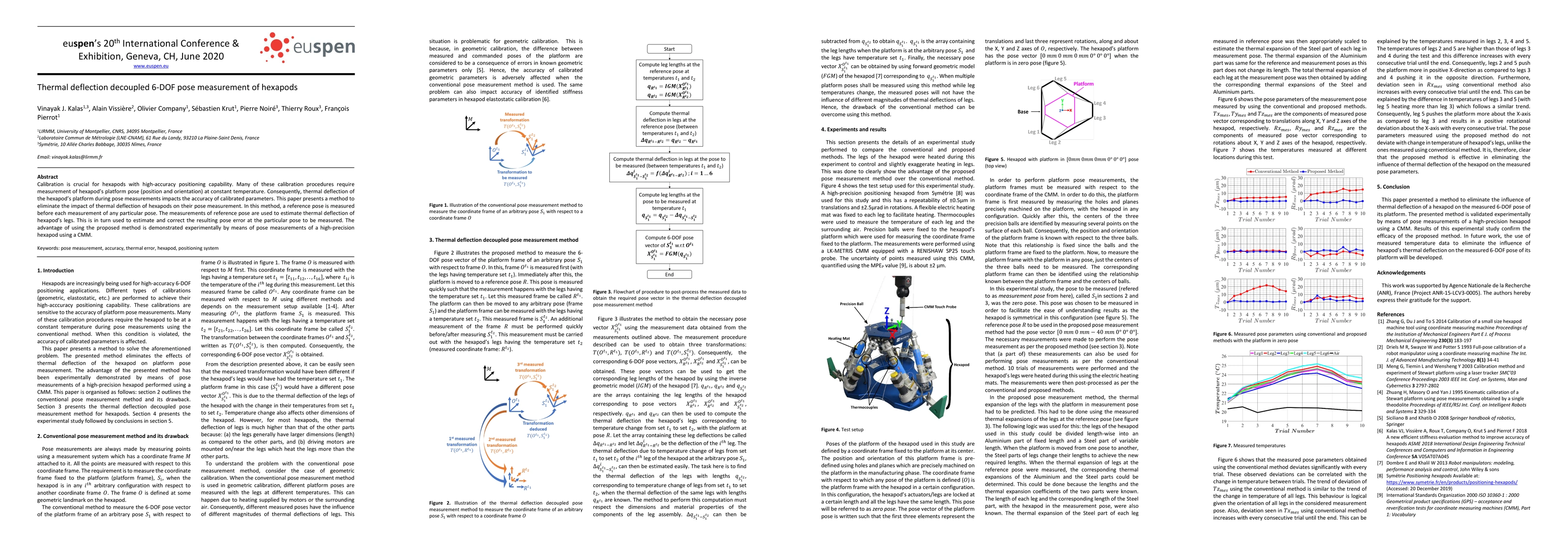 A new method eliminates the impact of thermal deflection on hexapod pose measurement, using a reference pose to estimate leg thermal deflection and correct resulting pose errors.