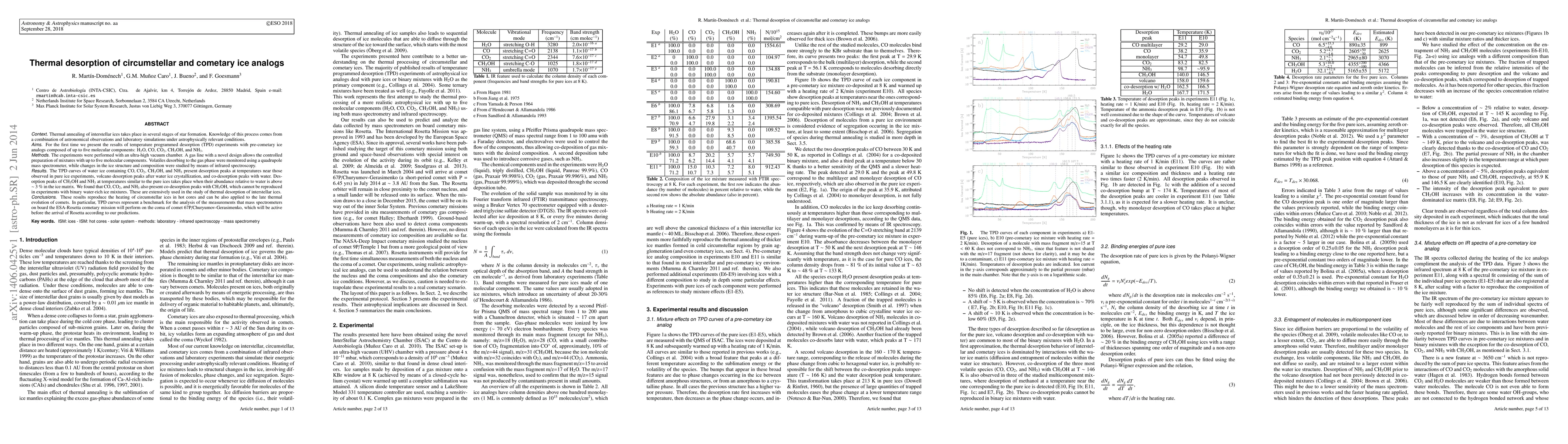 The research used a combination of laboratory experiments and computational modeling to study the thermodesorption of circumstellar and cometary ice analogs.