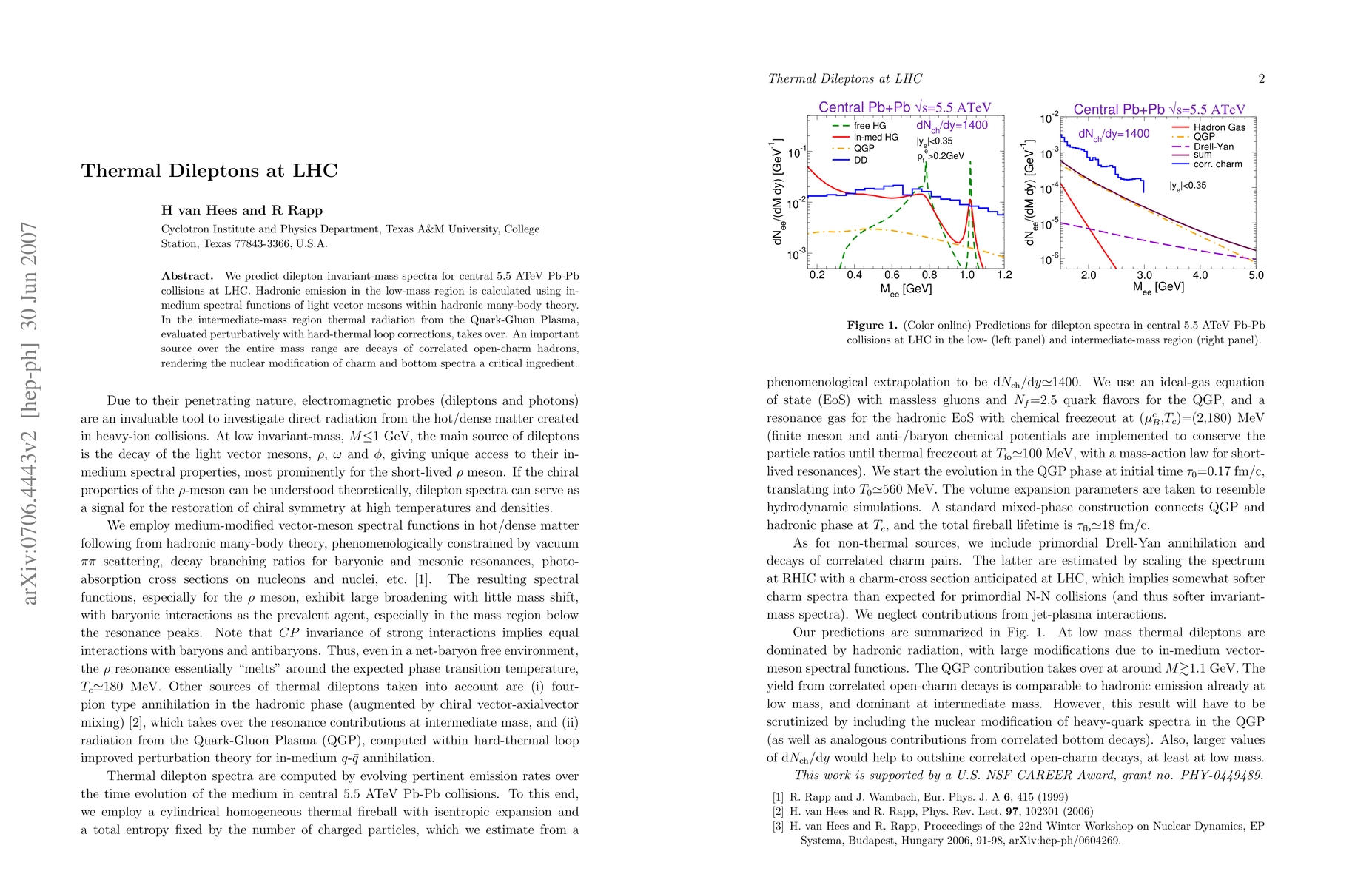 Predicts dilepton invariant-mass spectra for central 5.5 ATeV Pb-Pb collisions at LHC using in-medium spectral functions and hard-thermal loop corrections.