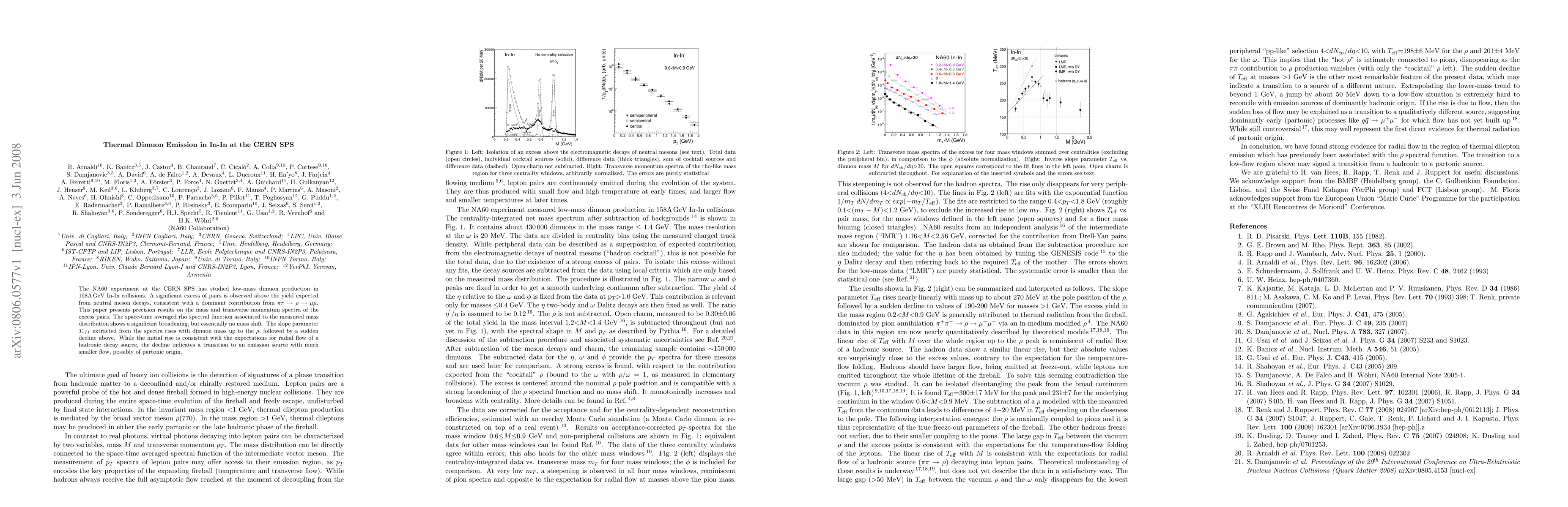 The NA60 experiment at CERN SPS investigates low-mass dimuon production in In-In collisions, revealing an excess above expected neutral meson decay yields. The study finds significant broadening in the rho spectral function without mass shift, suggesting a transition from hadronic to possibly partonic emission sources.