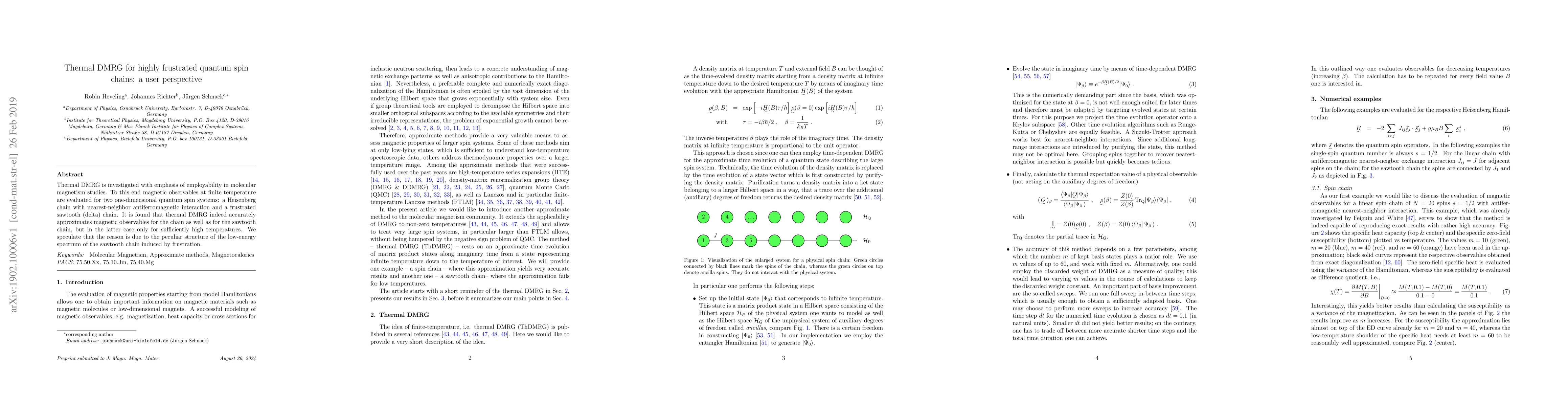 This paper explores the application of thermal Density Matrix Renormalization Group (DMRG) in studying molecular magnetism, evaluating magnetic observables at finite temperatures for two quantum spin systems. It finds that thermal DMRG accurately approximates these observables, though only for high temperatures in the frustrated sawtooth chain, likely due to the chain's unique low-energy spectrum.