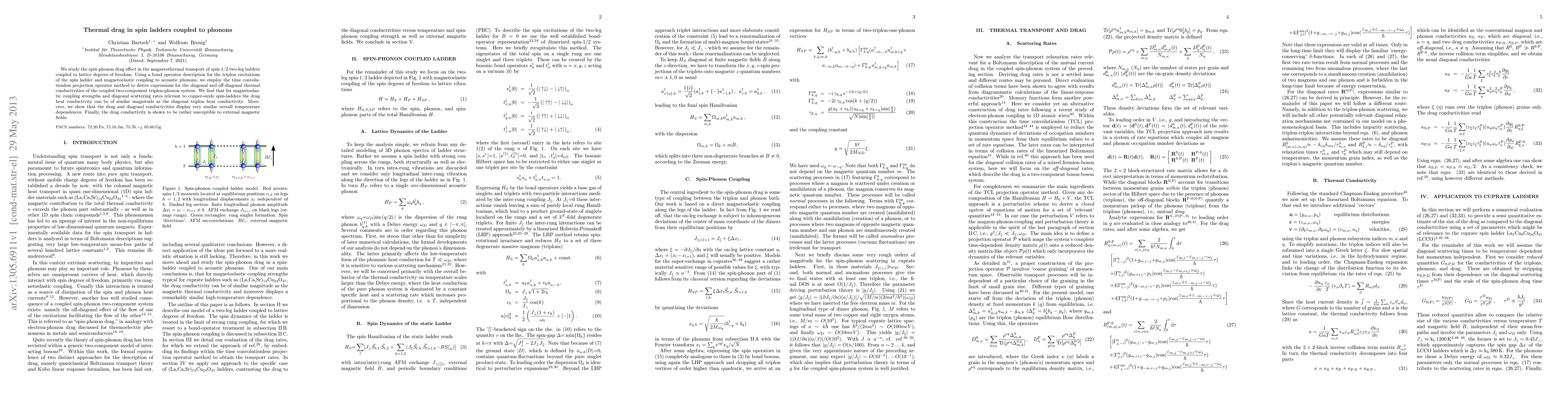 This paper investigates the spin-phonon drag effect in spin-1/2 two-leg ladders, finding that the drag heat conductivity can be comparable to the diagonal triplon heat conductivity, especially under relevant magnetoelastic coupling conditions. The study also reveals that both conductivities share similar temperature dependencies and that the drag conductivity is sensitive to external magnetic fields.