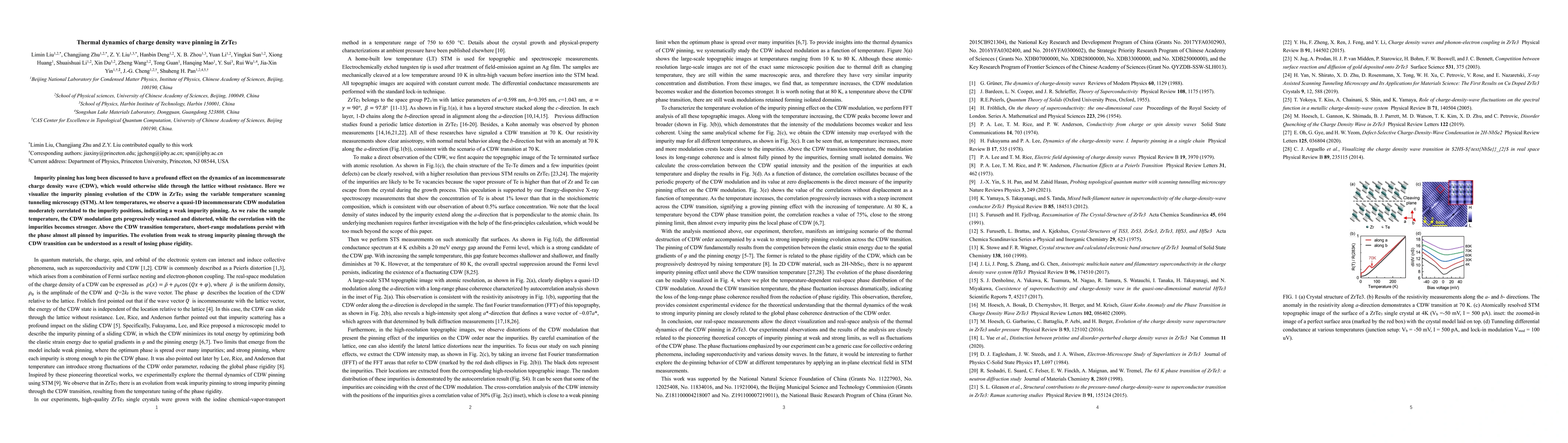 Research on ZrTe3 reveals that impurity pinning weakens charge density wave (CDW) modulation at low temperatures, but strengthens it as temperature increases, leading to a loss of CDW phase rigidity.