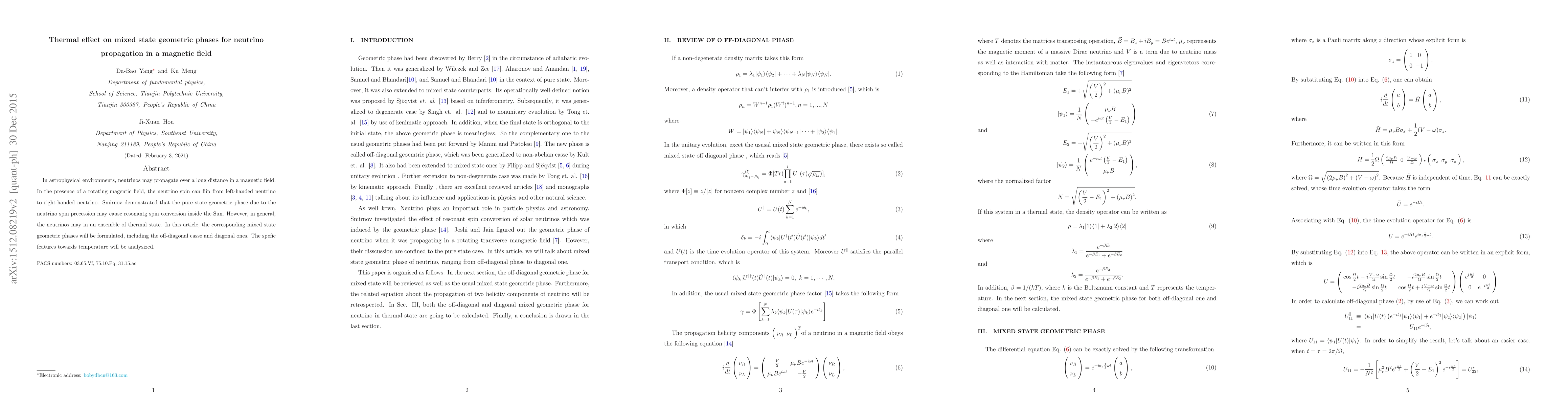 This paper investigates the mixed state geometric phases for neutrino propagation in a magnetic field, focusing on the thermal effects. It formulates both off-diagonal and diagonal mixed state geometric phases and analyzes their specific features in relation to temperature.