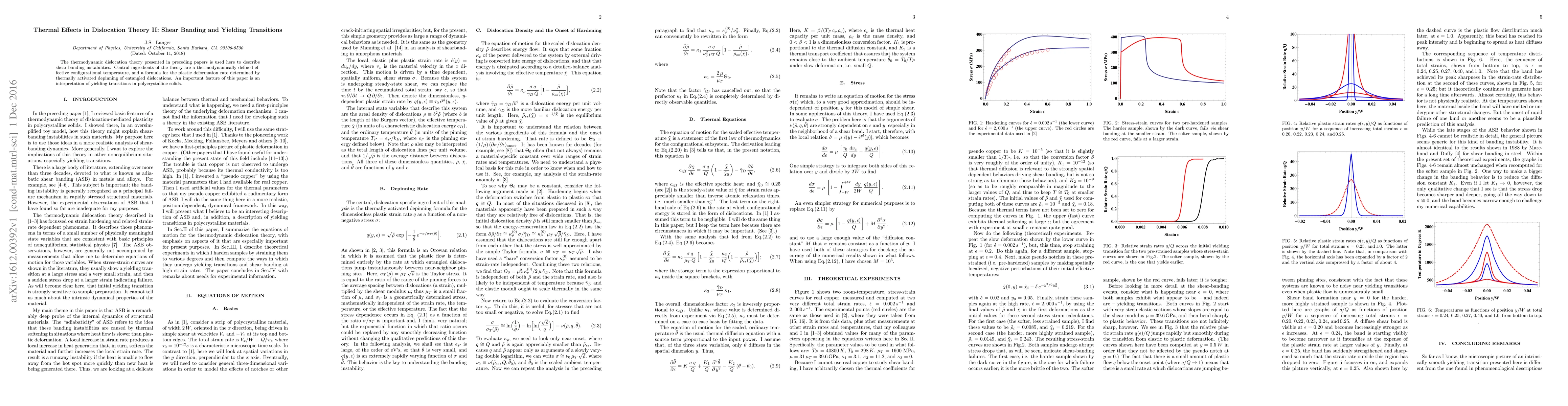 This paper extends thermodynamic dislocation theory to explain shear-banding instabilities through a defined effective configurational temperature and a thermally activated plastic deformation rate. It also interprets yielding transitions in polycrystalline solids based on these principles.