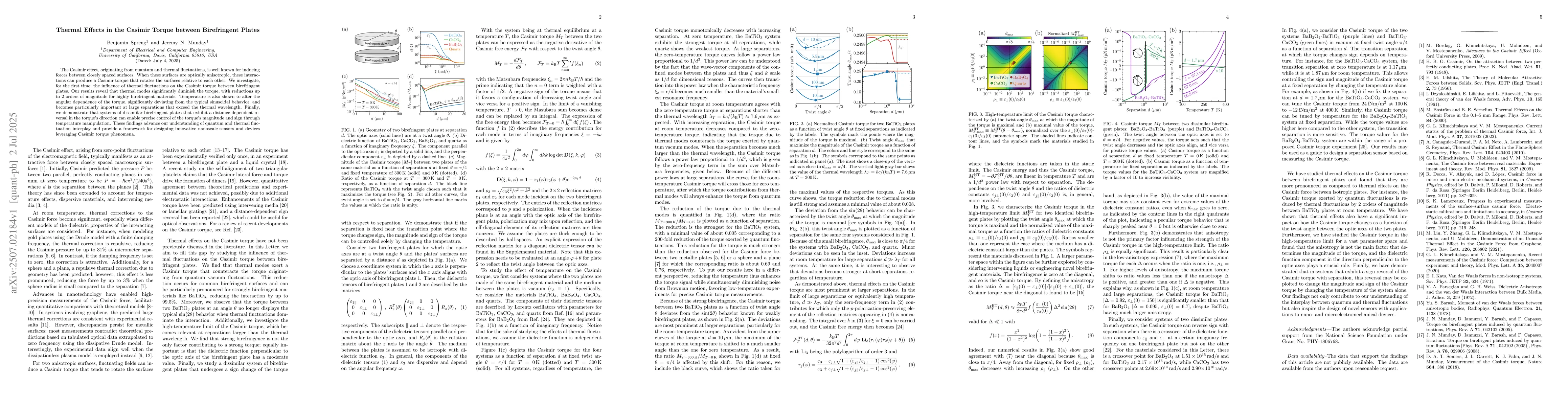 The research employed a combination of theoretical modeling and experimental measurements to investigate the thermal effects on the Casimir force between birefringent plates.