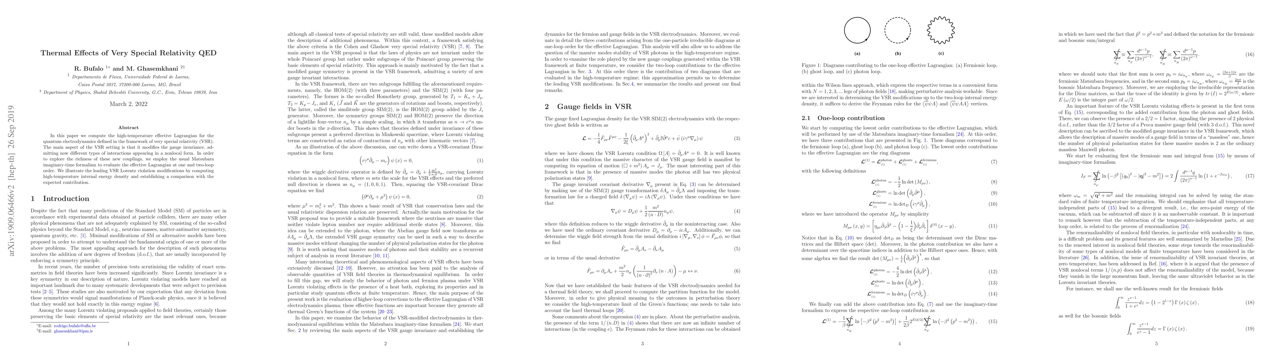 This paper calculates the high-temperature effective Lagrangian for quantum electrodynamics in Very Special Relativity (VSR), revealing new nonlocal interaction types due to modified gauge invariance. Using the Matsubara imaginary-time formalism, it examines these couplings at one and two-loop levels, comparing VSR Lorentz violation effects with internal energy density expectations.