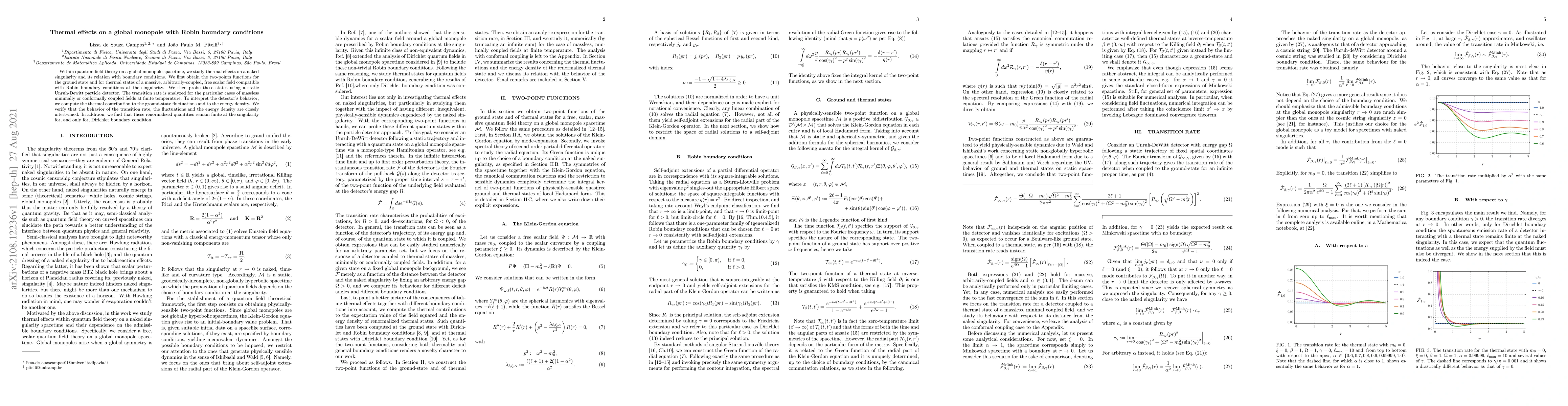 This paper investigates thermal effects on a naked singularity in a global monopole spacetime with Robin boundary conditions, analyzing the transition rate of a static Unruh-Dewitt detector and finding that renormalized quantities remain finite only under Dirichlet boundary conditions. The study reveals a close relationship between the transition rate, ground-state fluctuations, and energy density.